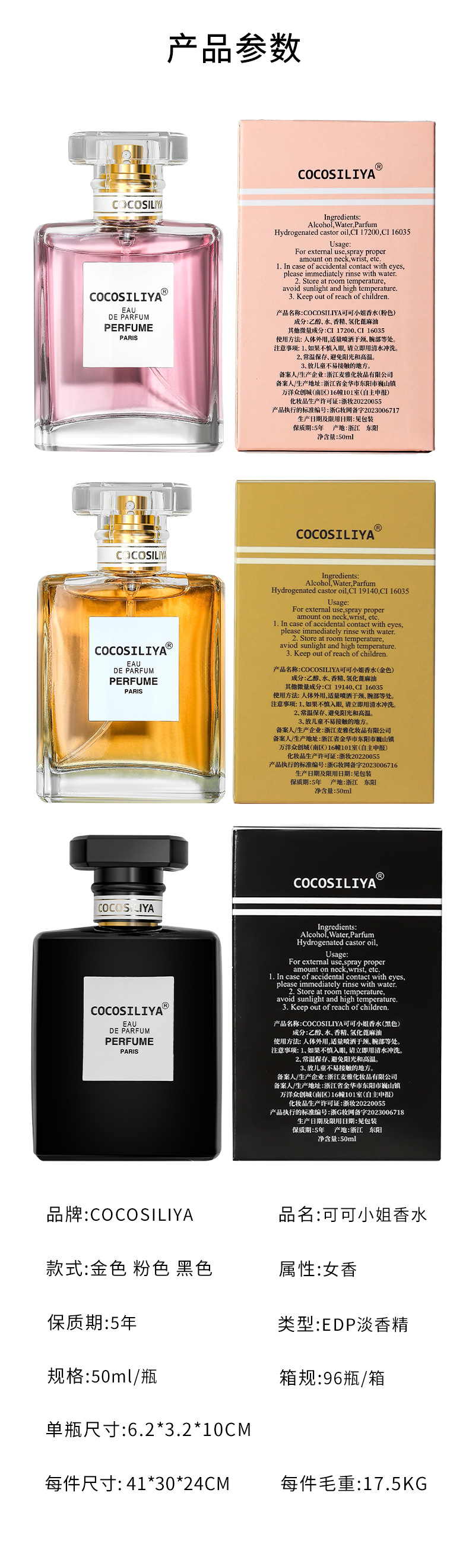 新款COCOSILIYA可可小姐女士香水持久留香清新小众香水50ml代发