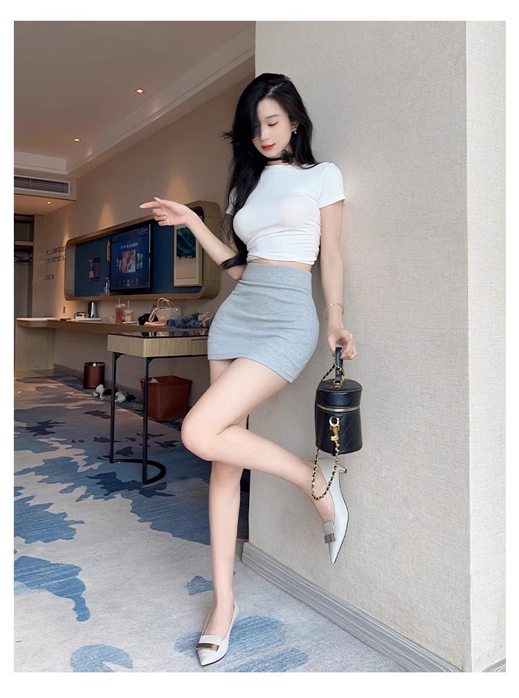 半身裙女小个子短裙夏季高腰弹力辣妹包臀裙针织紧身打底一步裙子