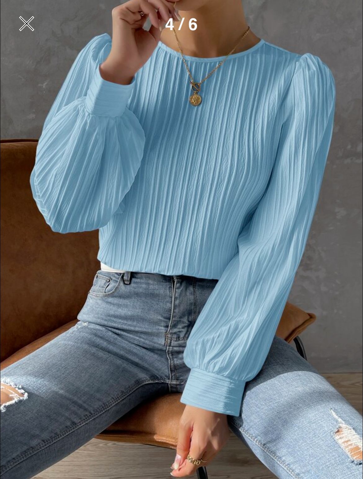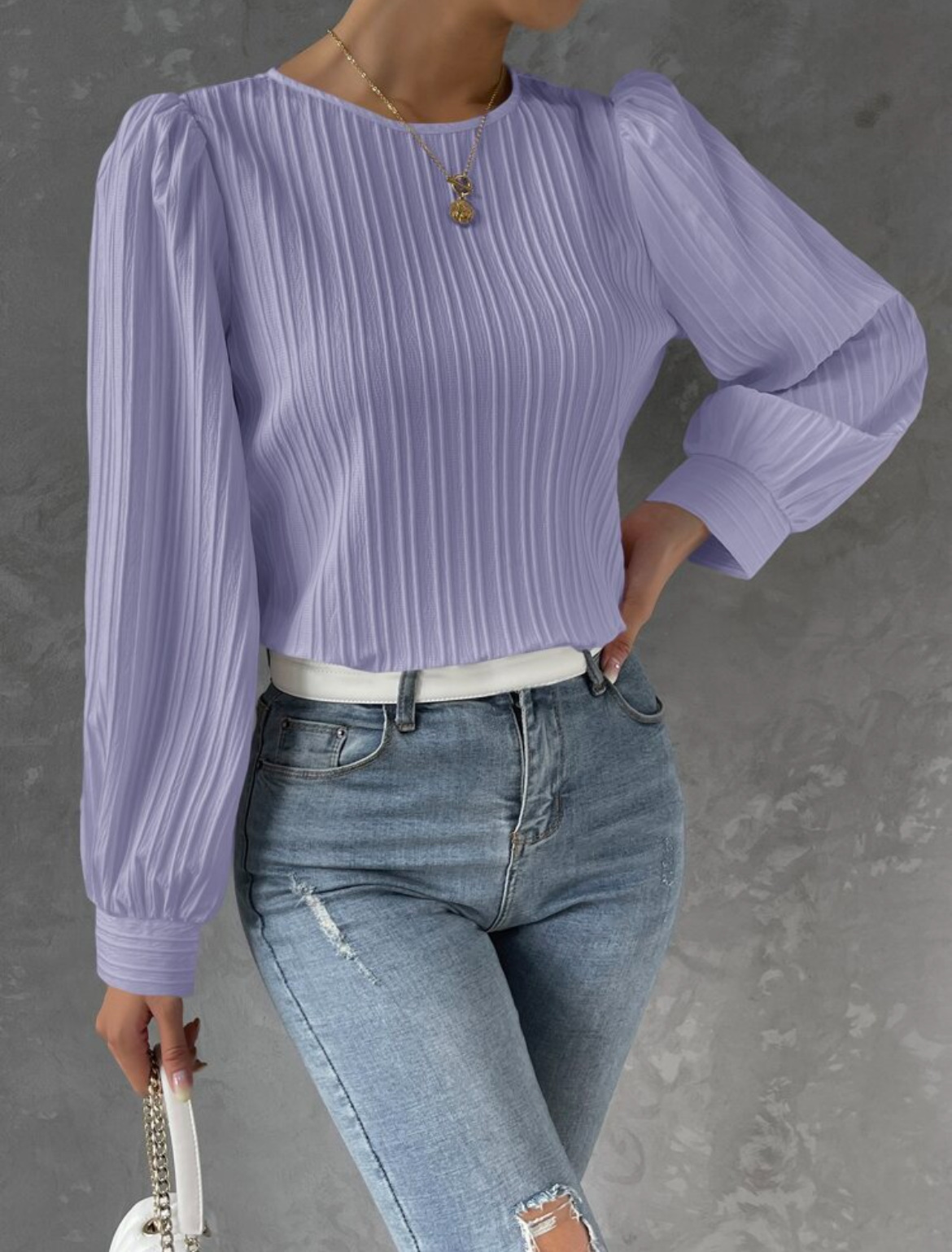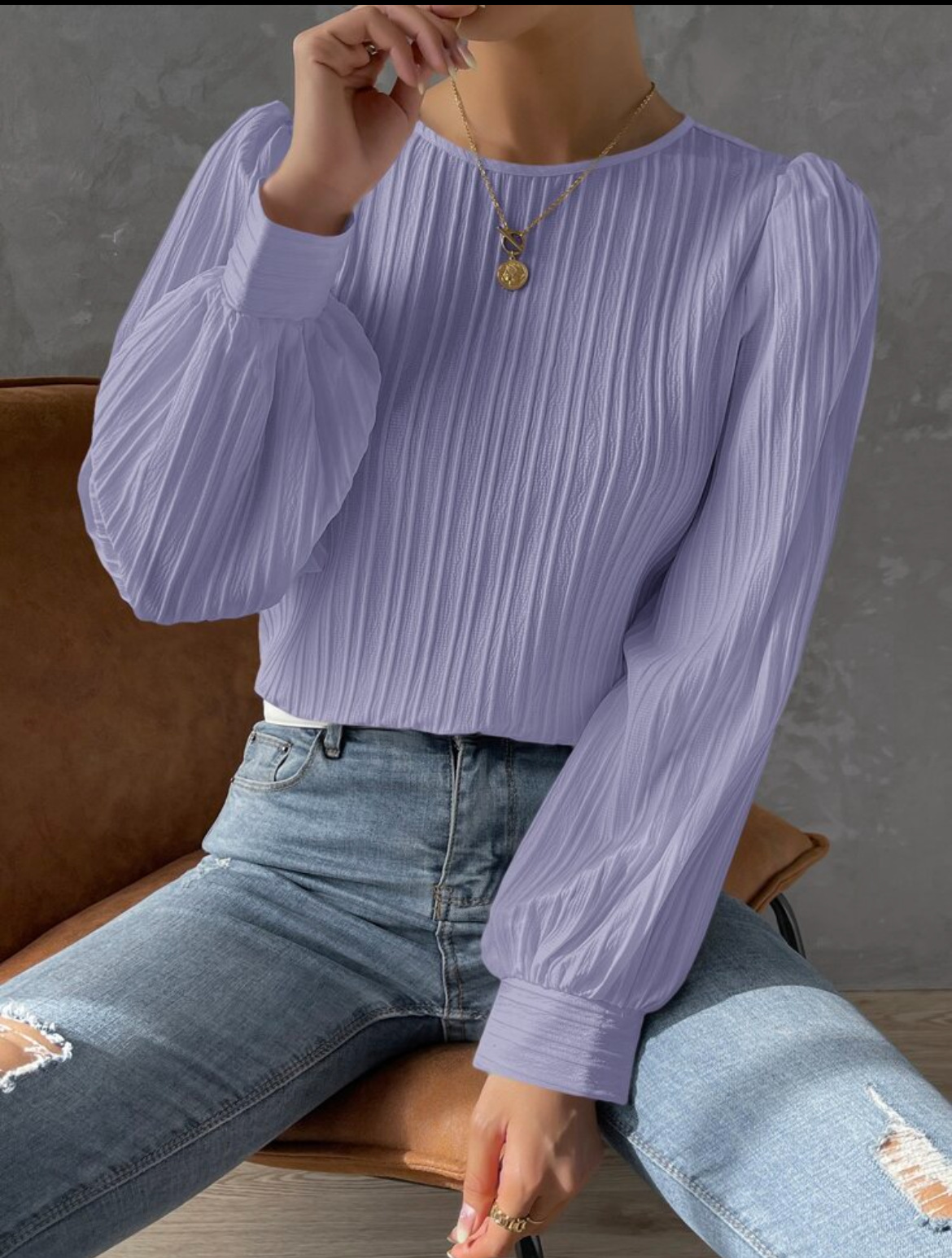 2023欧美新款春季圆领灯笼袖长袖纯色宽松女衬衫