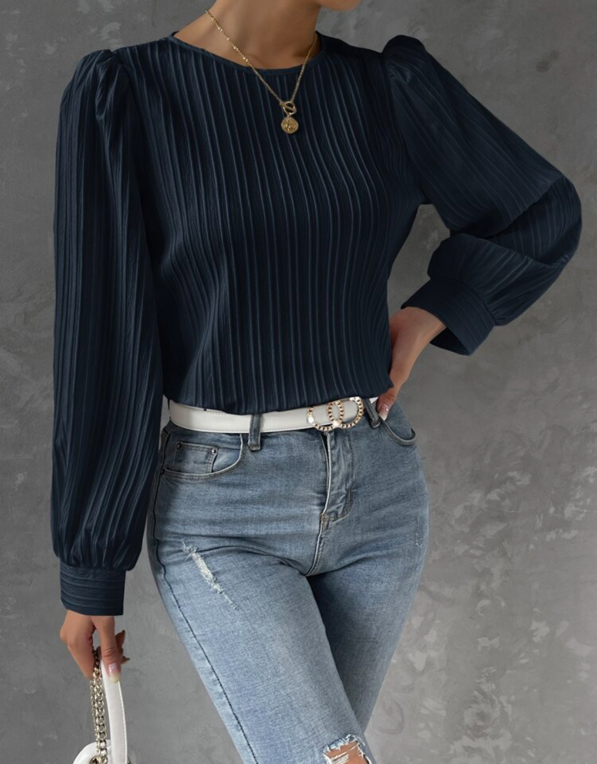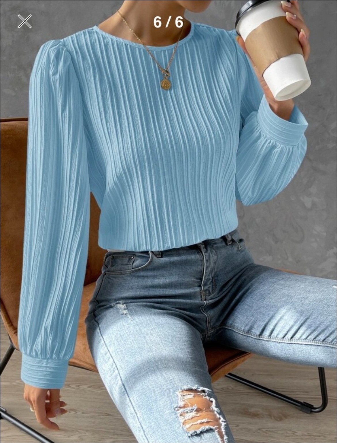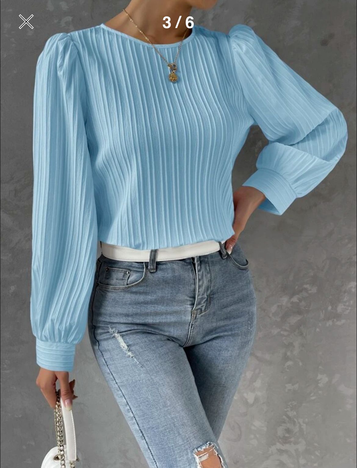 2023欧美新款春季圆领灯笼袖长袖纯色宽松女衬衫