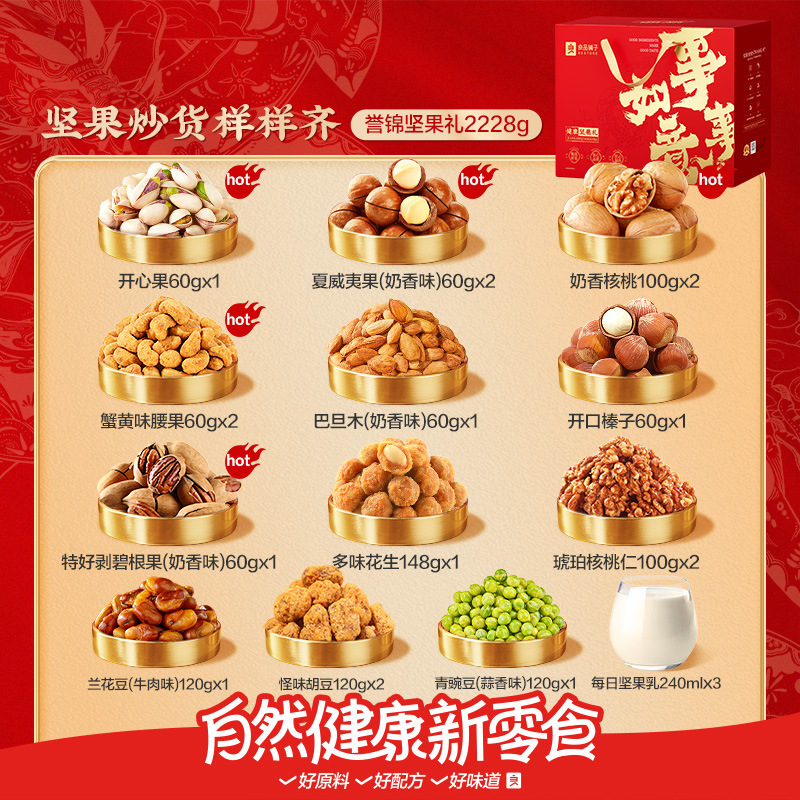 良品铺子坚果礼盒20袋/2228g年货礼盒送长辈新年走亲戚过年大礼包