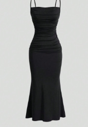 2024亚马逊欧美跨境性感风无领连衣裙高腰系带吊带包臀长裙女