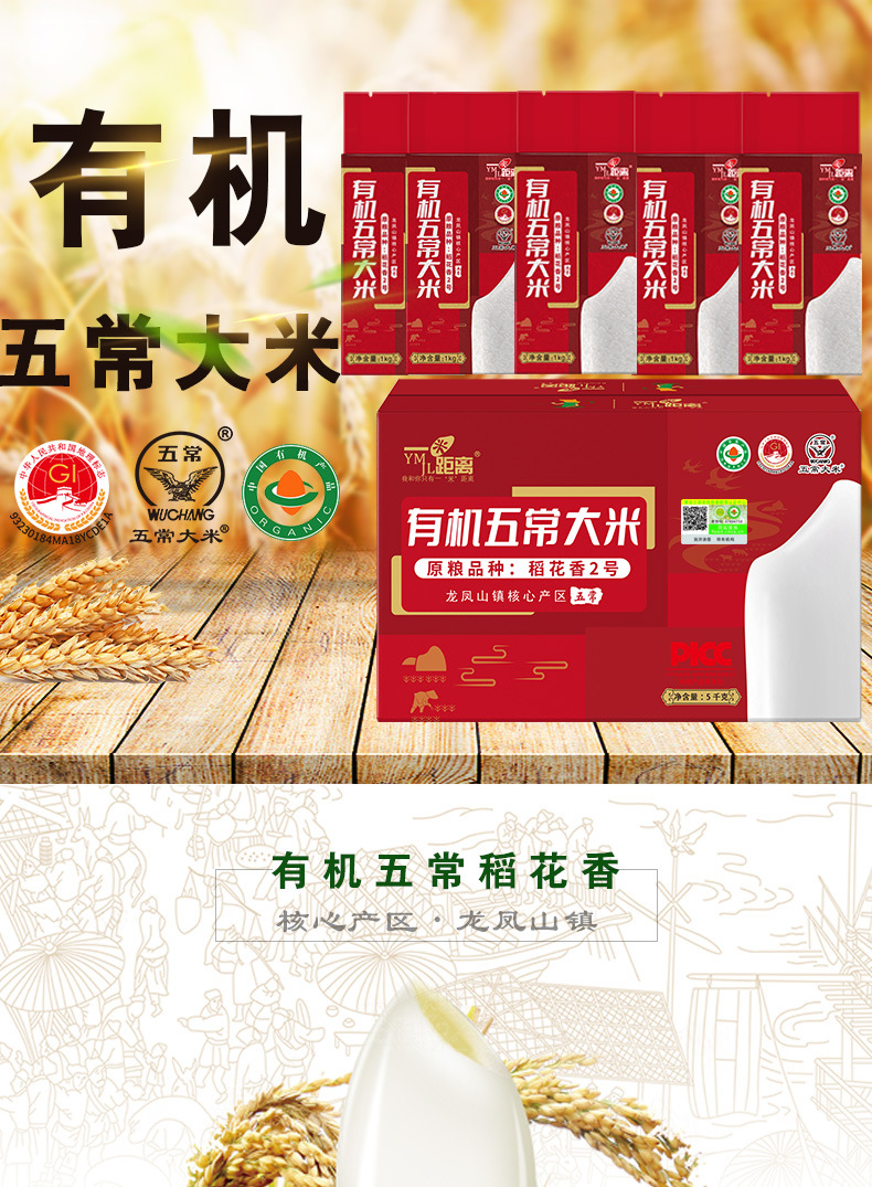 有机五常稻花香2号大米1kg*5共10斤大米5kg一袋长粒厂家批发代发