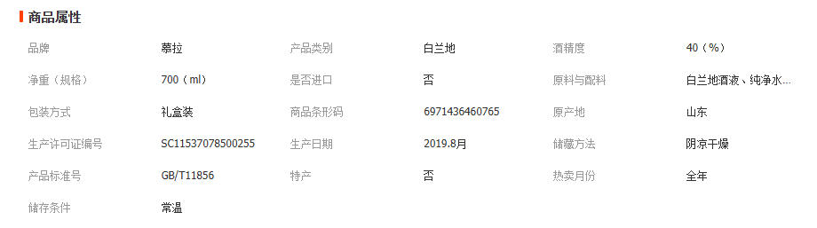 慕拉XO洋酒白兰地酒40度婚宴烈酒xo红酒700毫升威士忌伏特加基酒