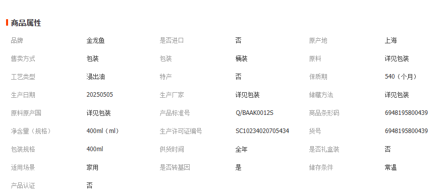 金龙鱼黄金比例调和油400ml家用小瓶装炒菜烹饪食用油