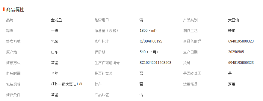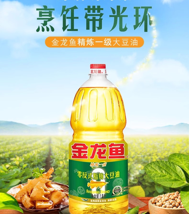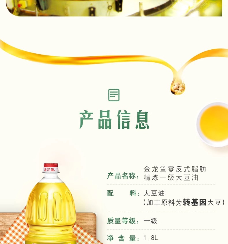 金龙鱼精炼一级大豆油1.8L 炒菜烹饪烘焙家用礼品桶装食用油