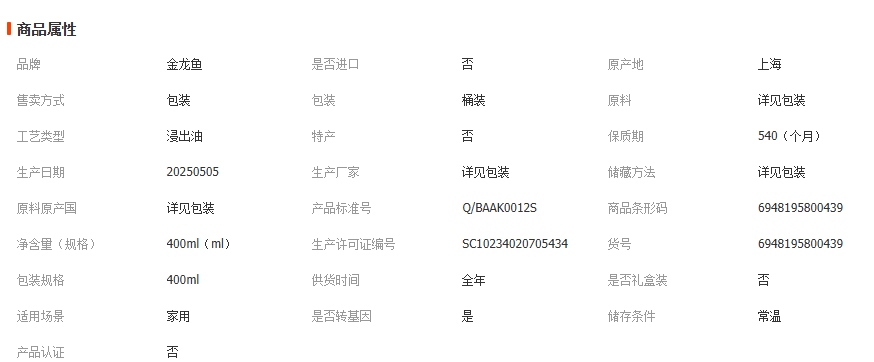 金龙鱼黄金比例调和油400ml家用小瓶装炒菜烹饪食用油