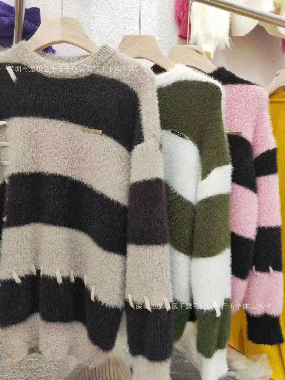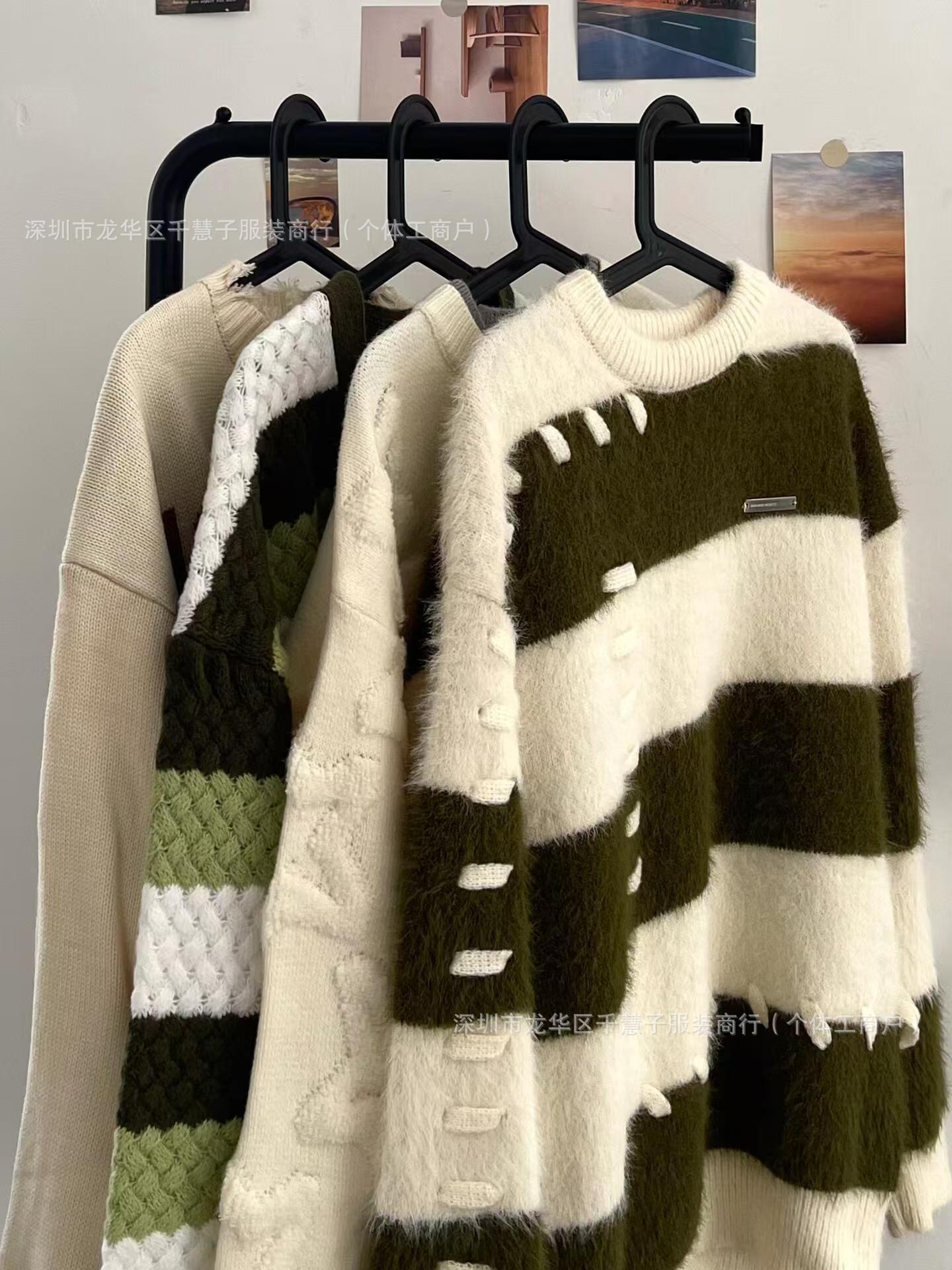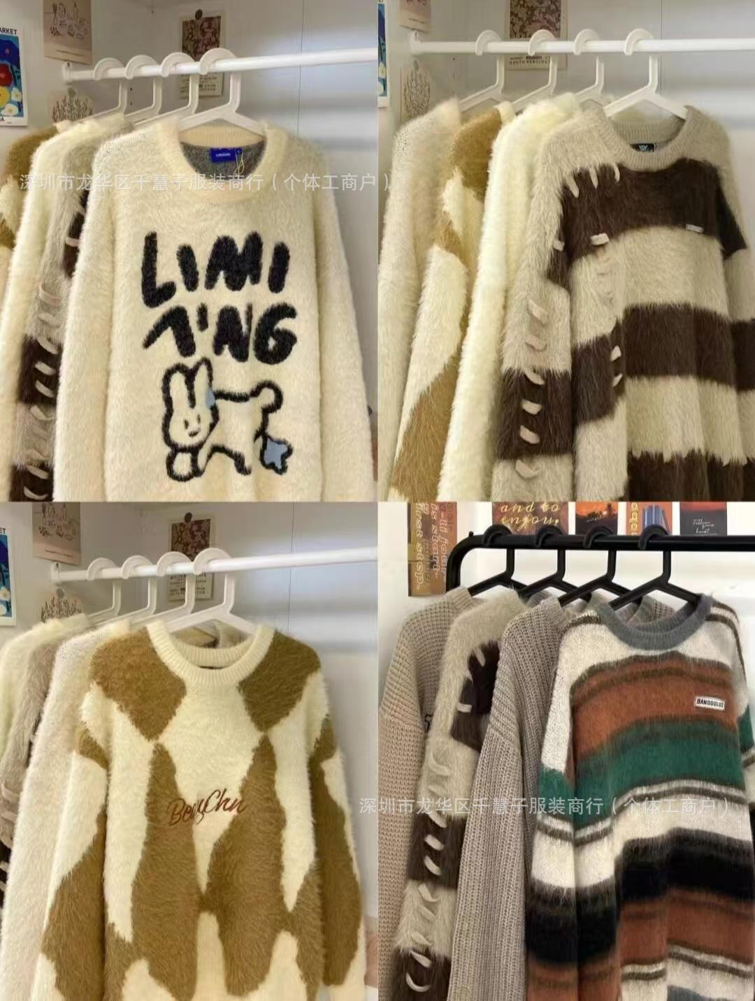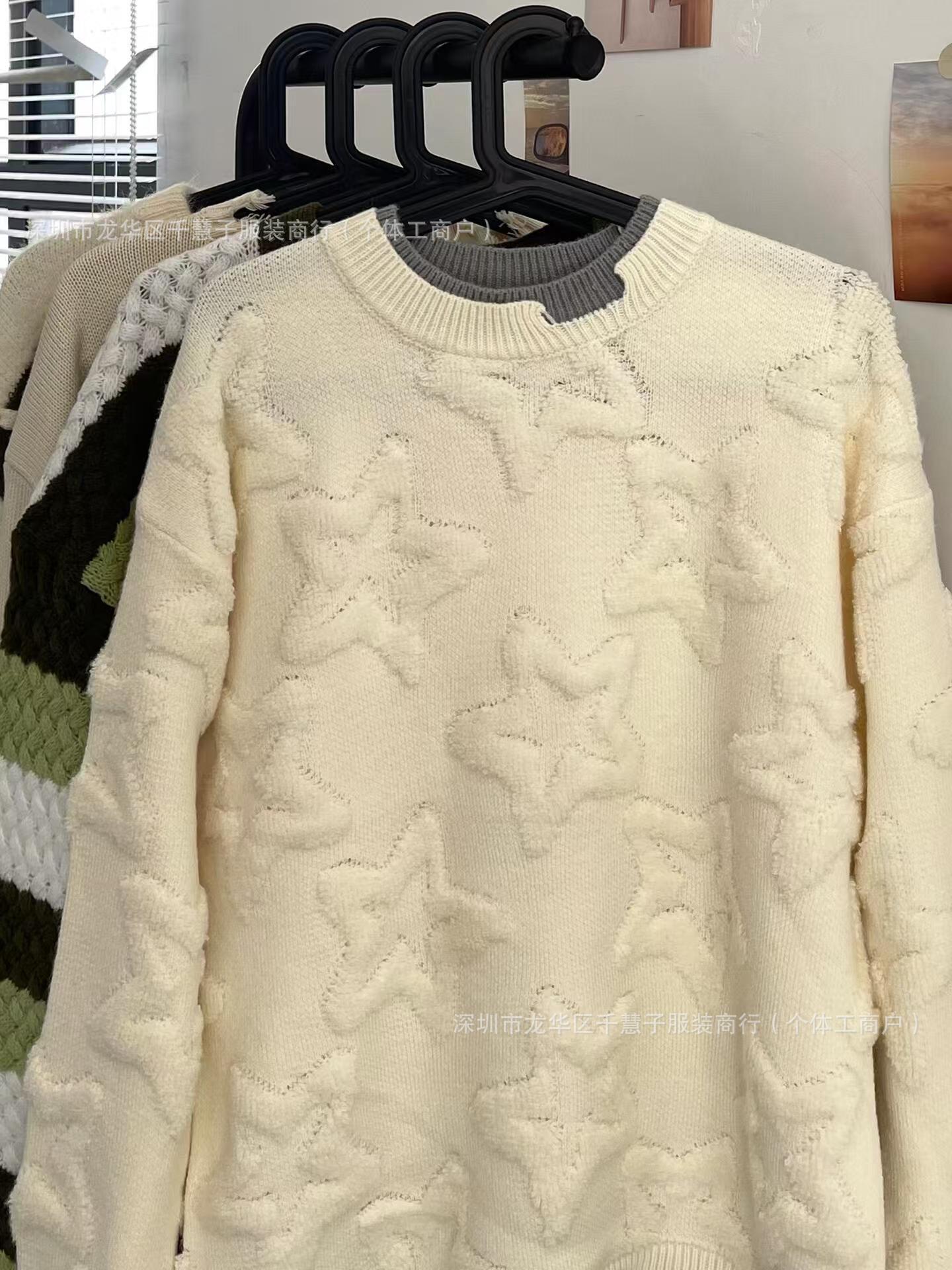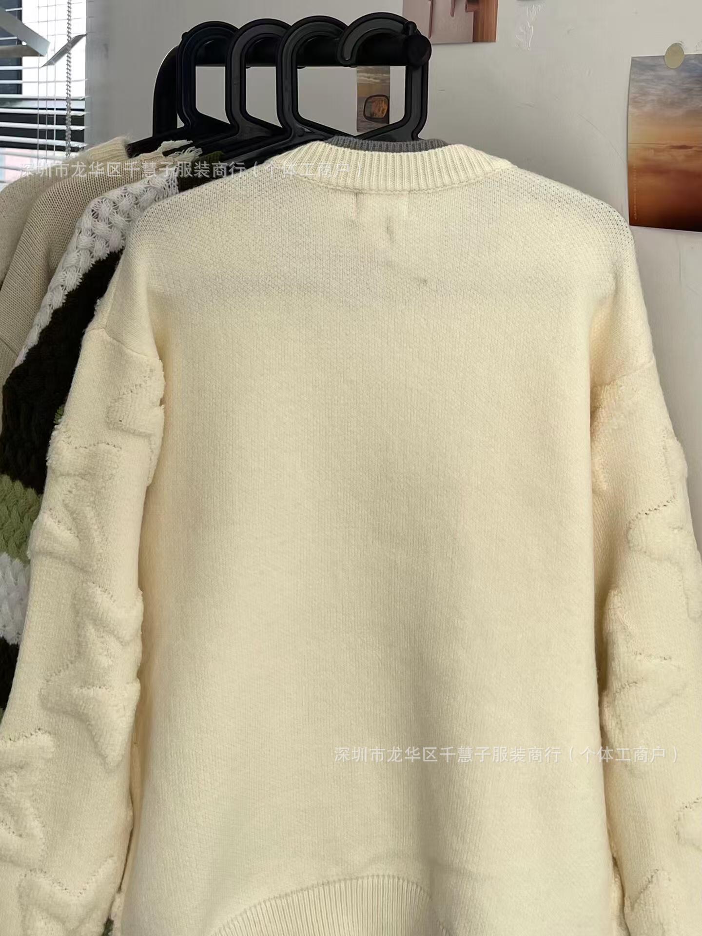 韩版圆领毛衣女2024秋冬季新款女士宽松慵懒风加厚针织衫直播批发