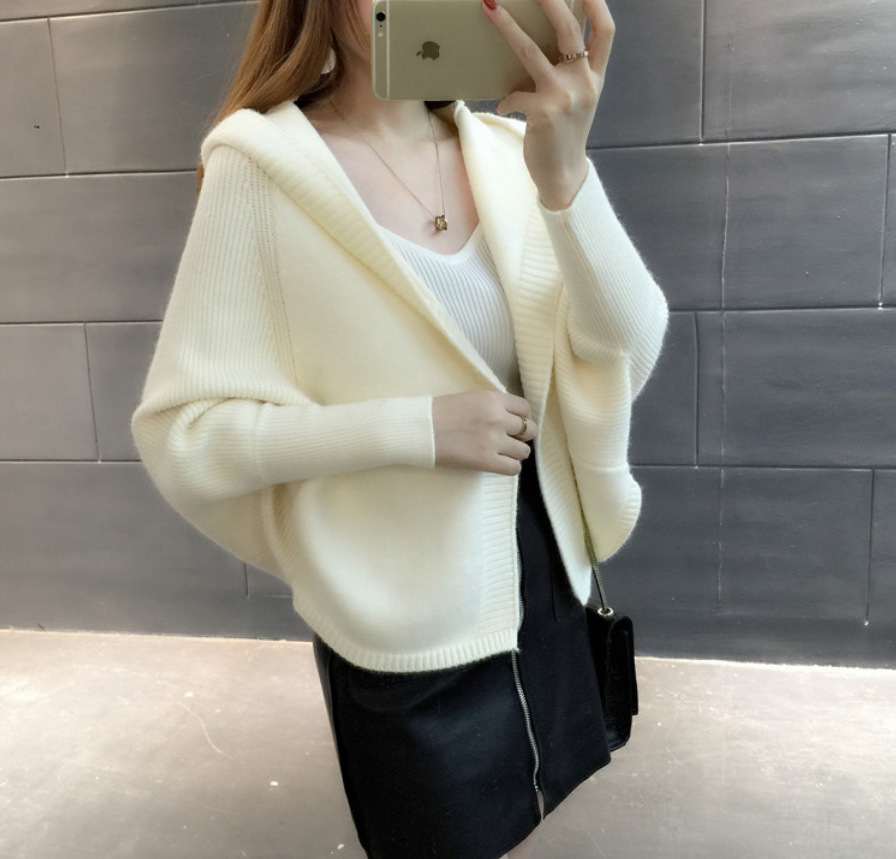 2025春秋装披肩小外套女士连帽斗篷式蝙蝠型短款毛衣针织开衫女新
