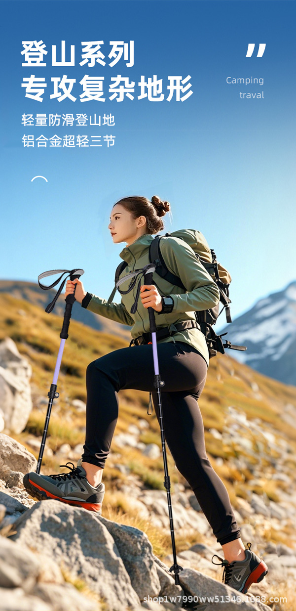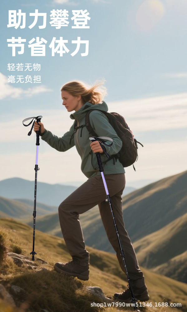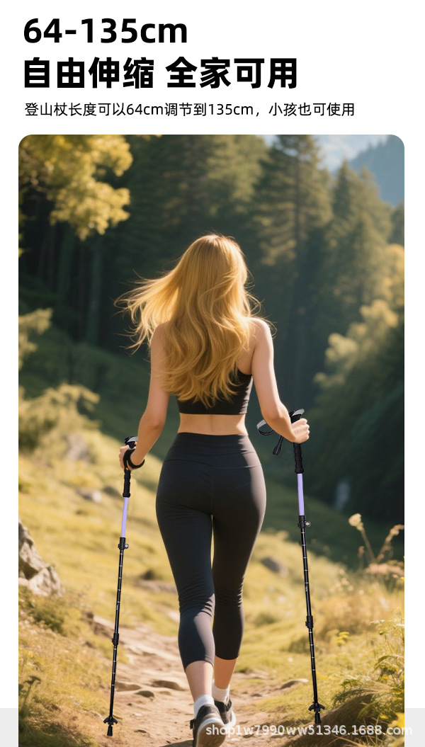 户外登山杖内外锁超轻伸缩拐杖专业爬山装备棍男女儿童杖徒步手杖