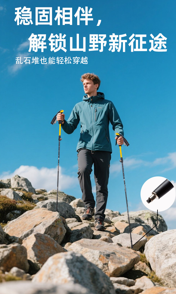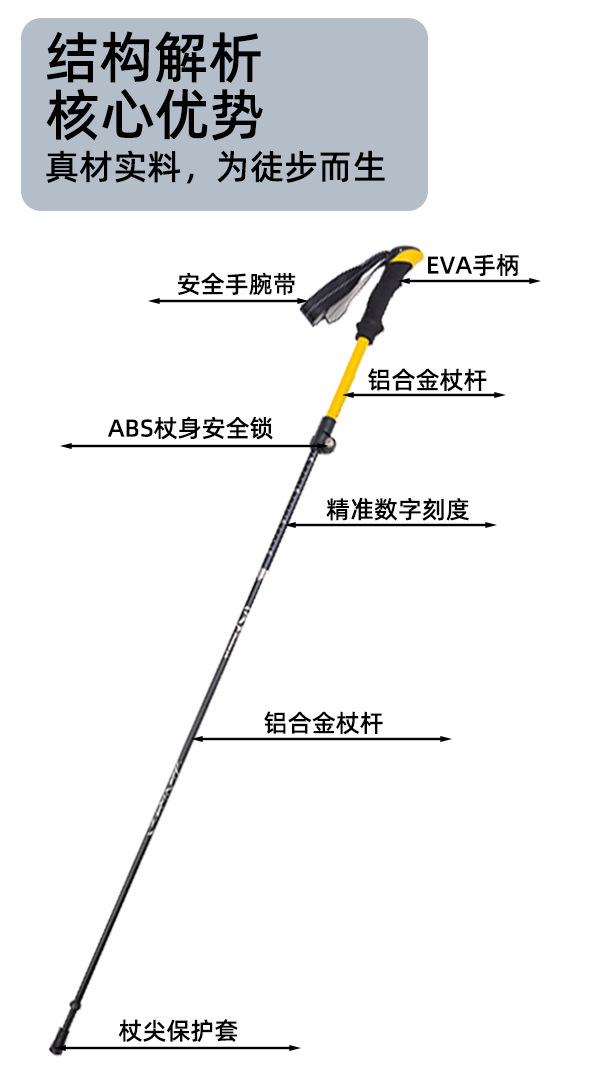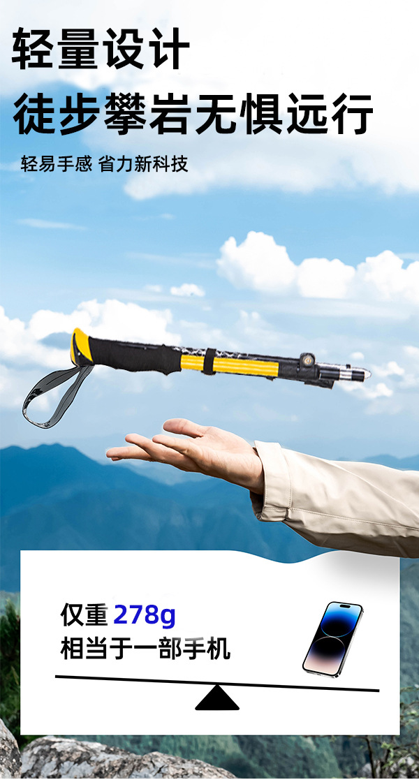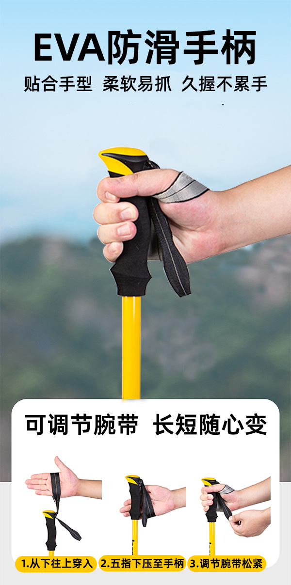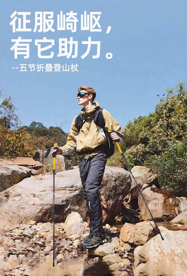 五节登山杖伸缩便携超轻铝合金野营徒步手杖户外登山爬山旅游装备