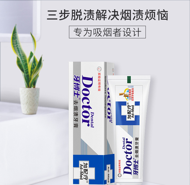 牙博士去烟渍牙膏含氟防蛀牙去渍去黄亮白清新口气男士专用家庭用