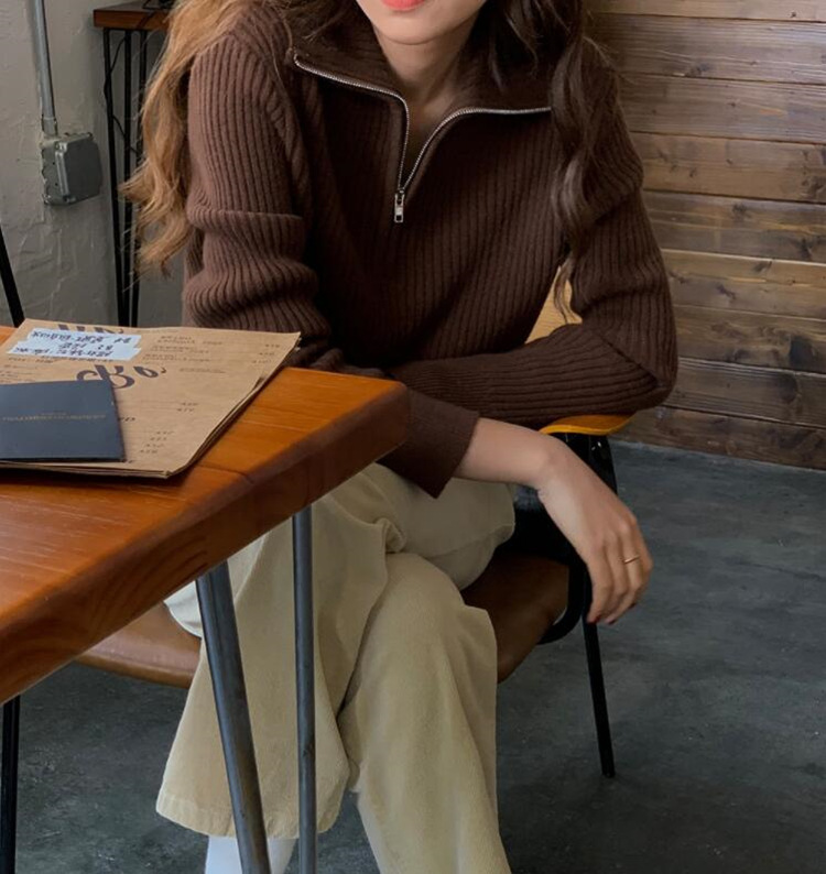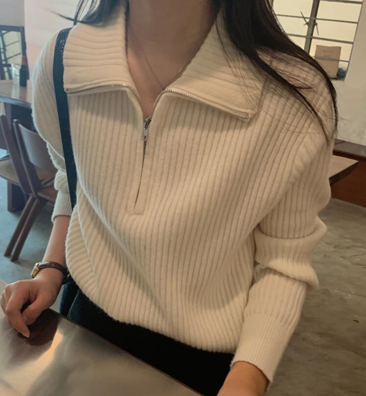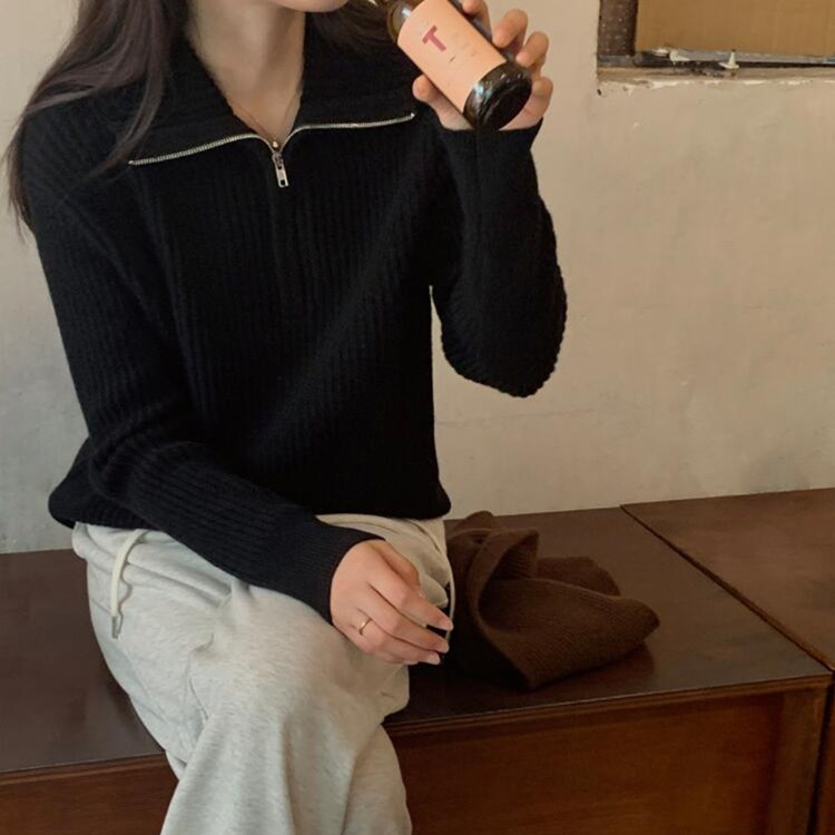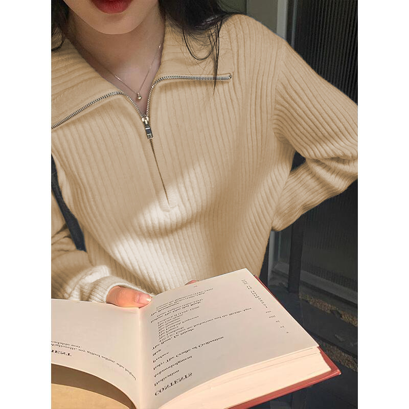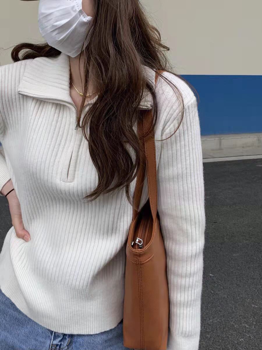 拉链内搭宽松针织衫女2024秋冬新款设计感小众打底洋气长袖上衣