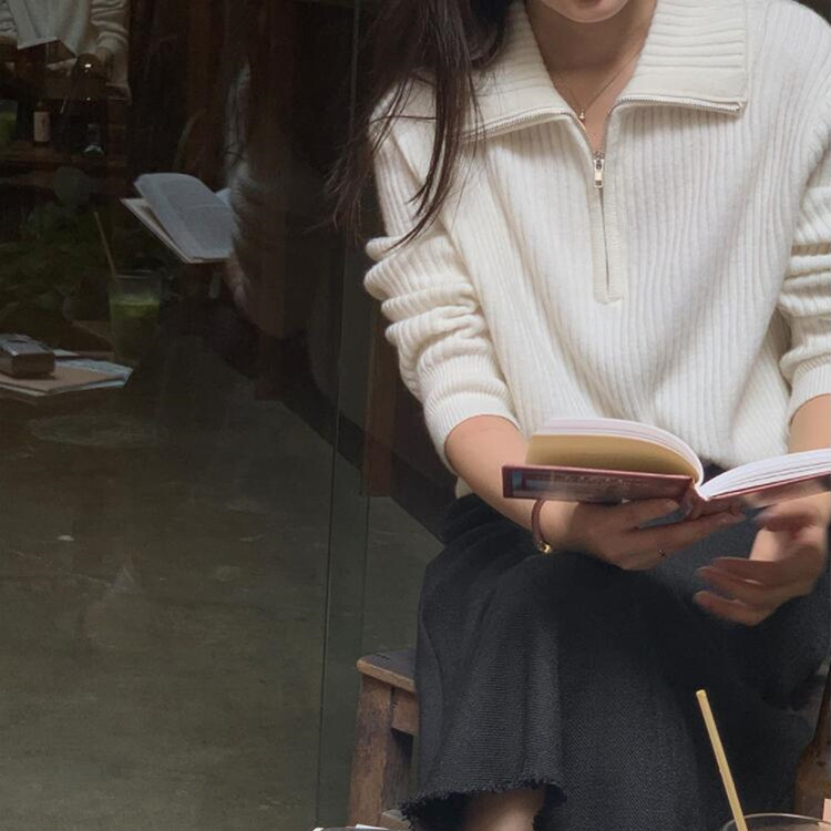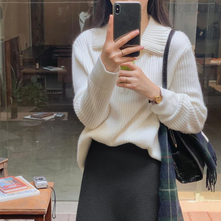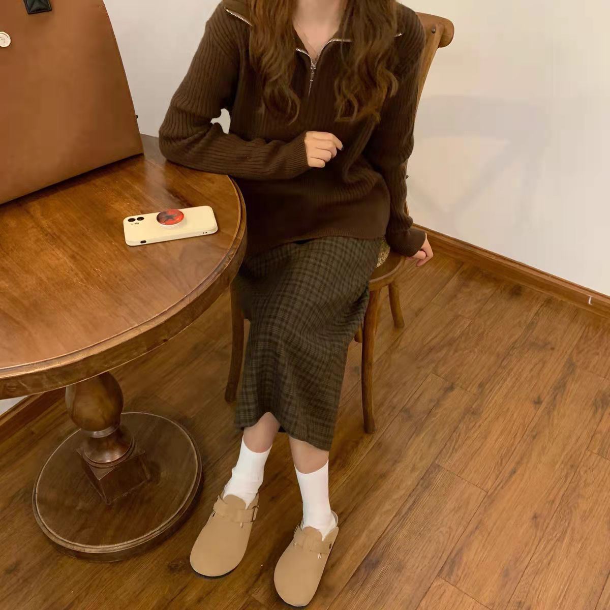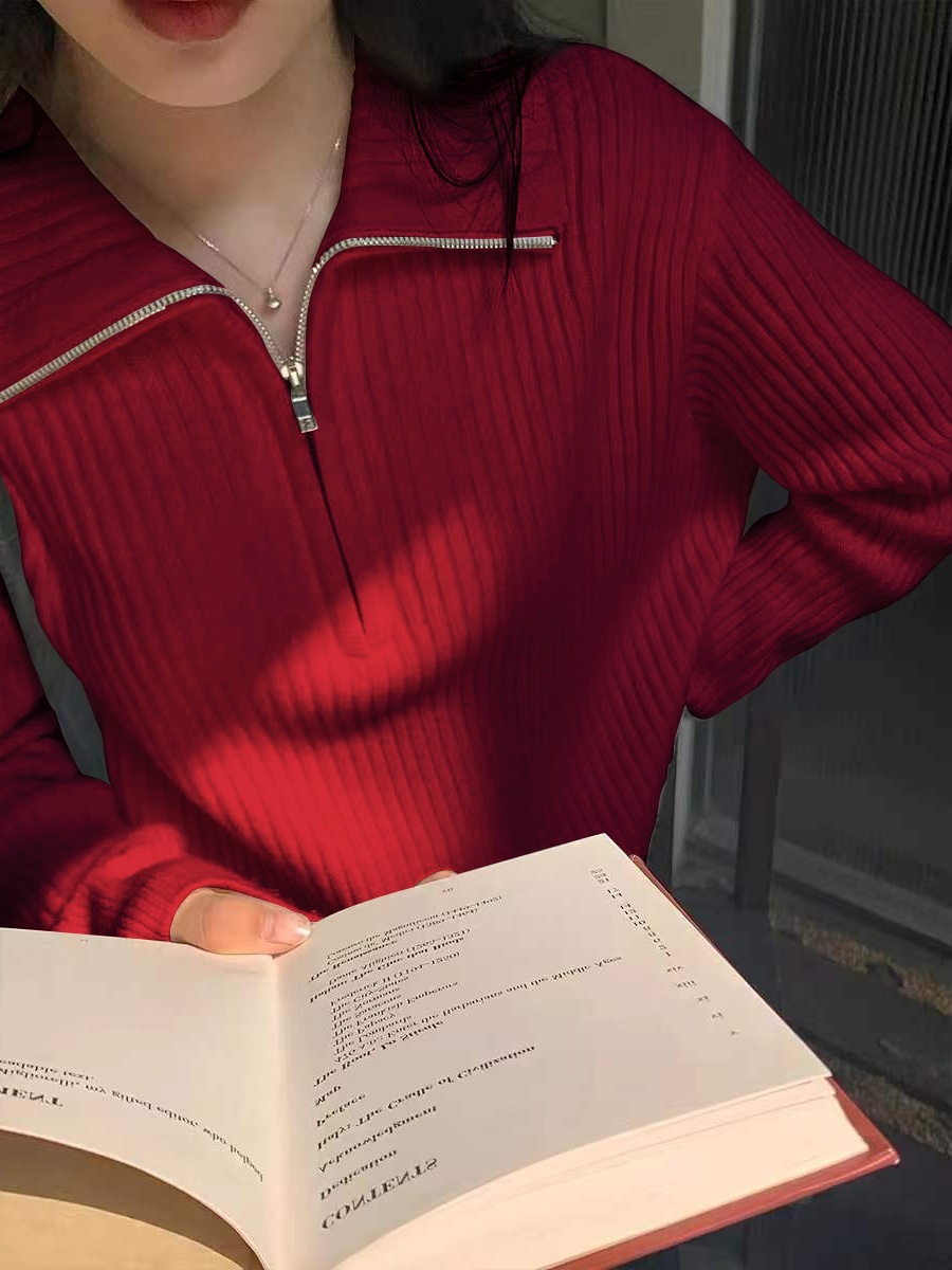 拉链内搭宽松针织衫女2024秋冬新款设计感小众打底洋气长袖上衣