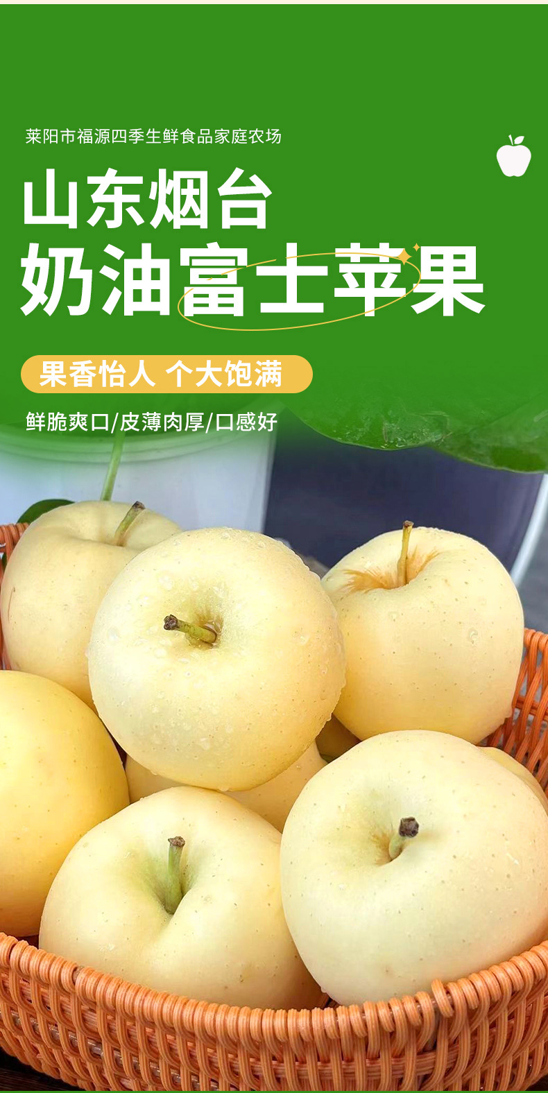 正宗烟台黄金奶油富士苹果新鲜水果应季冰糖心脆甜多汁整箱批发