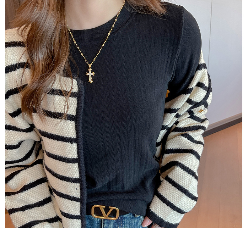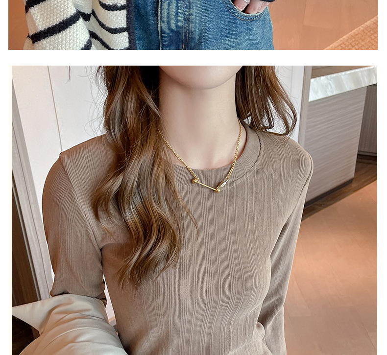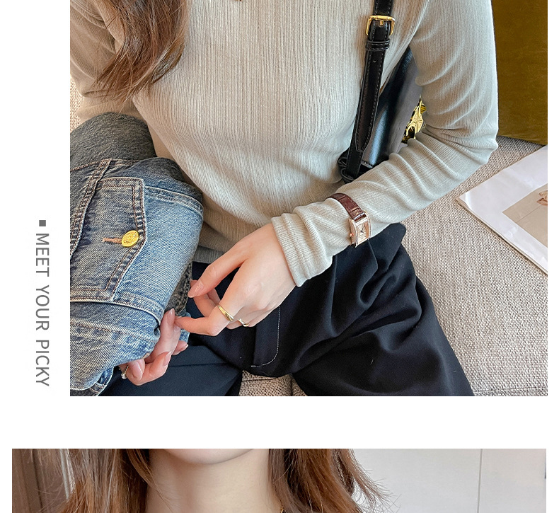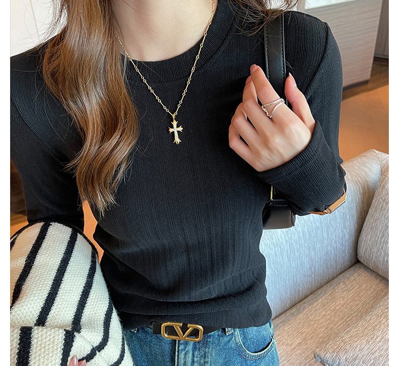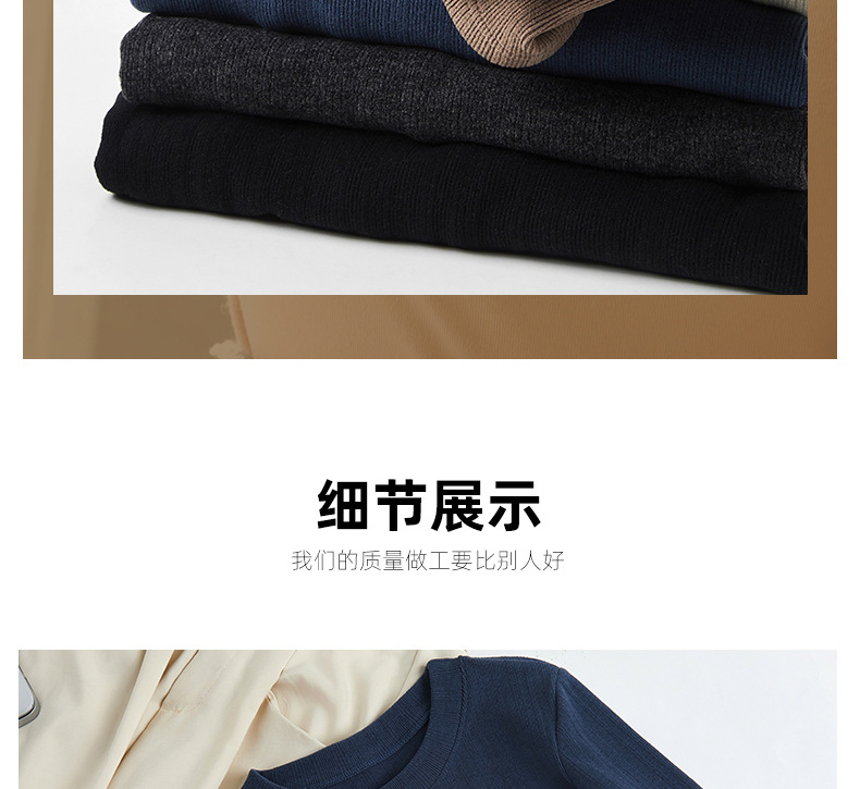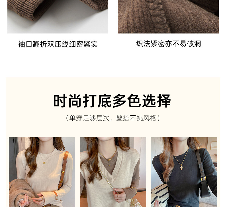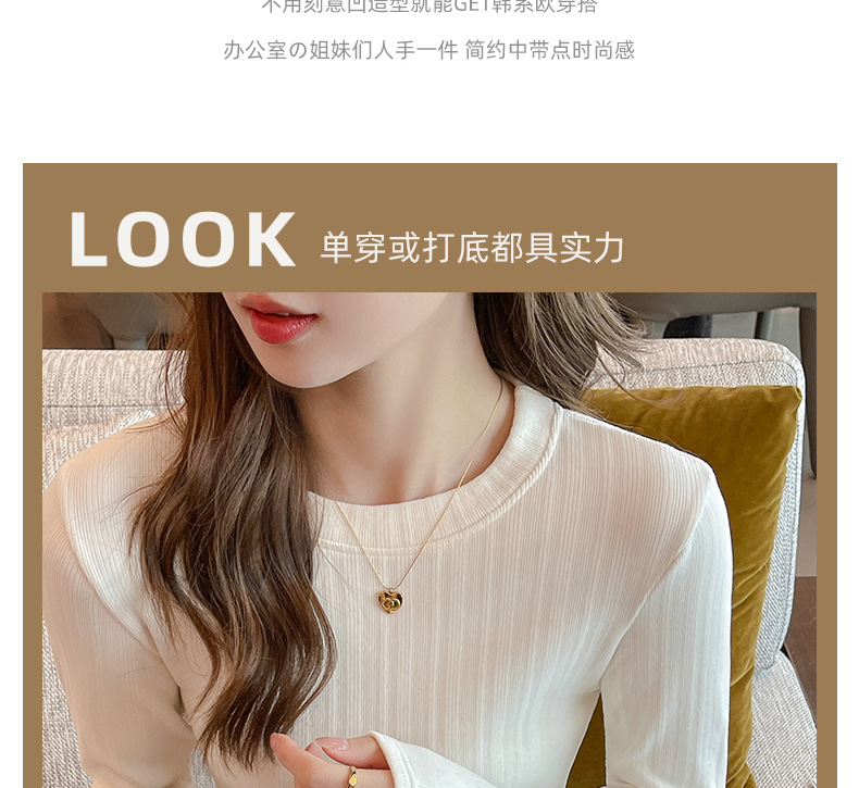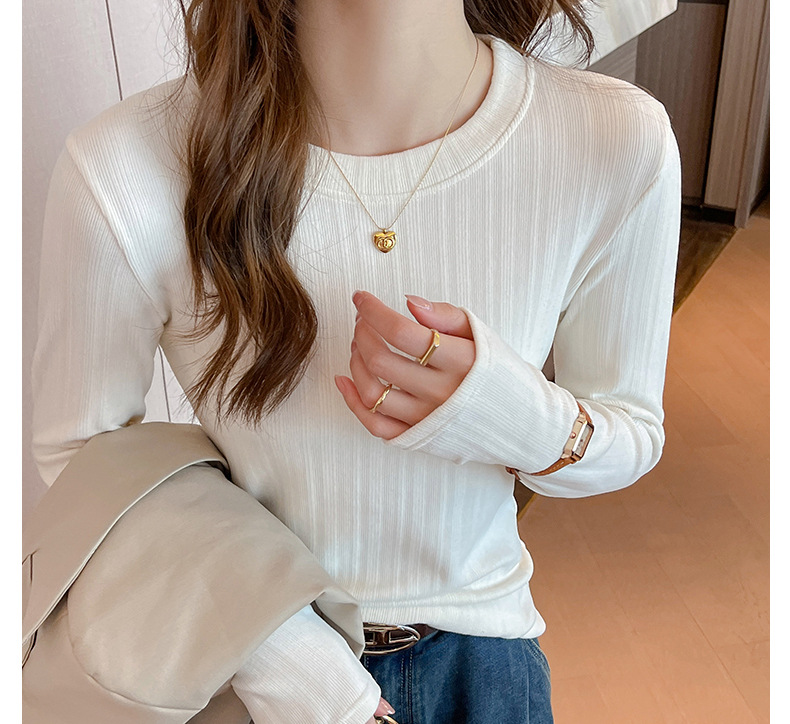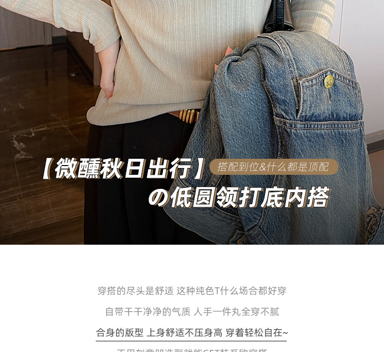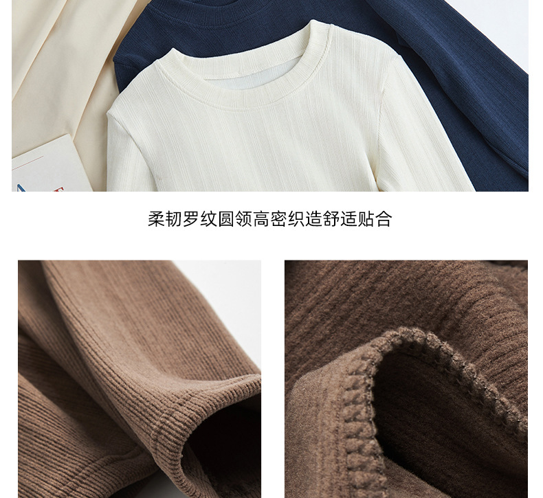 新款螺纹小圆领打底衫女内搭高级感秋冬季长袖t恤可外穿德绒上衣