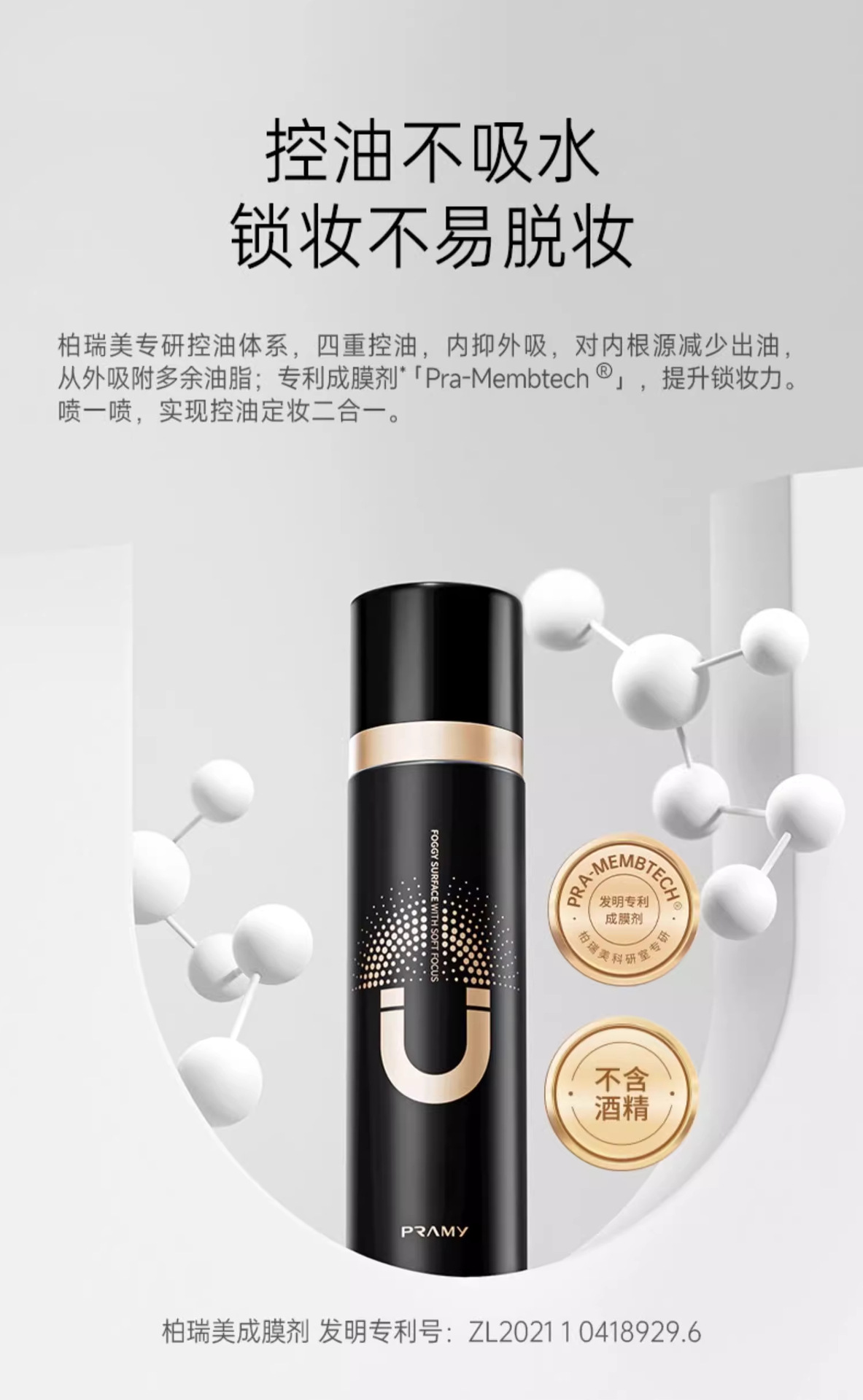 PRAMY/柏瑞美定妆喷雾定妆控油快速定妆携带保湿柔焦雾面