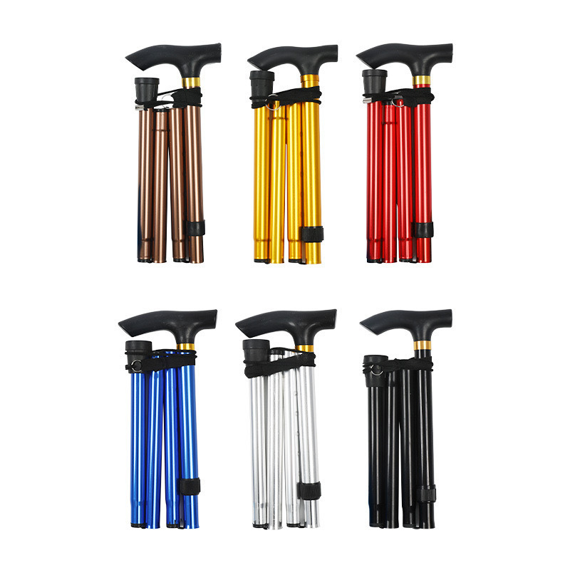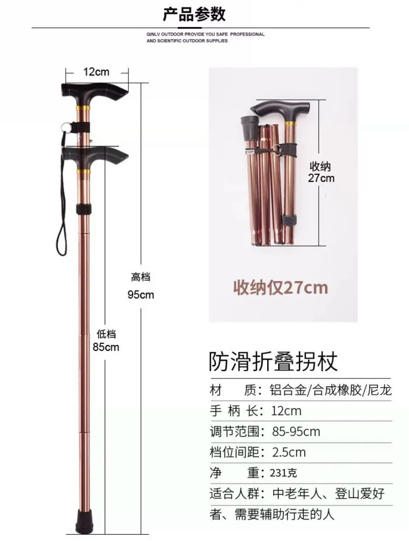 厂家直供五节铝合金登山杖老人防滑拐杖超轻可折叠伸缩登山杖徒