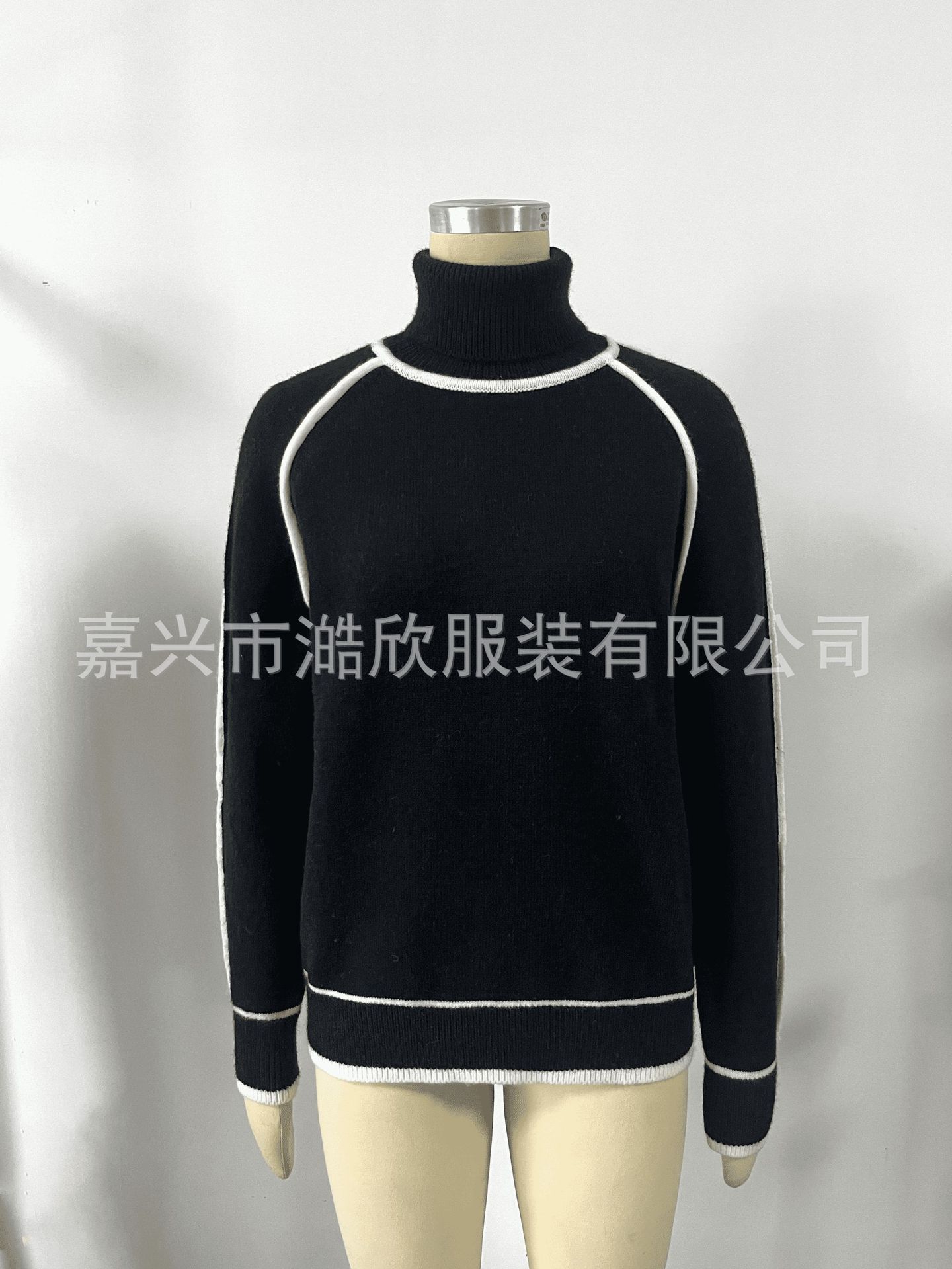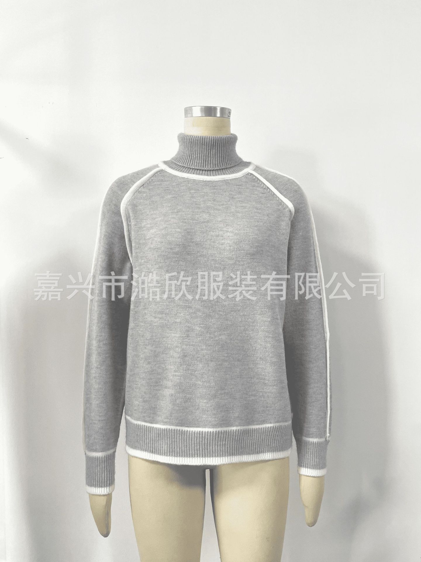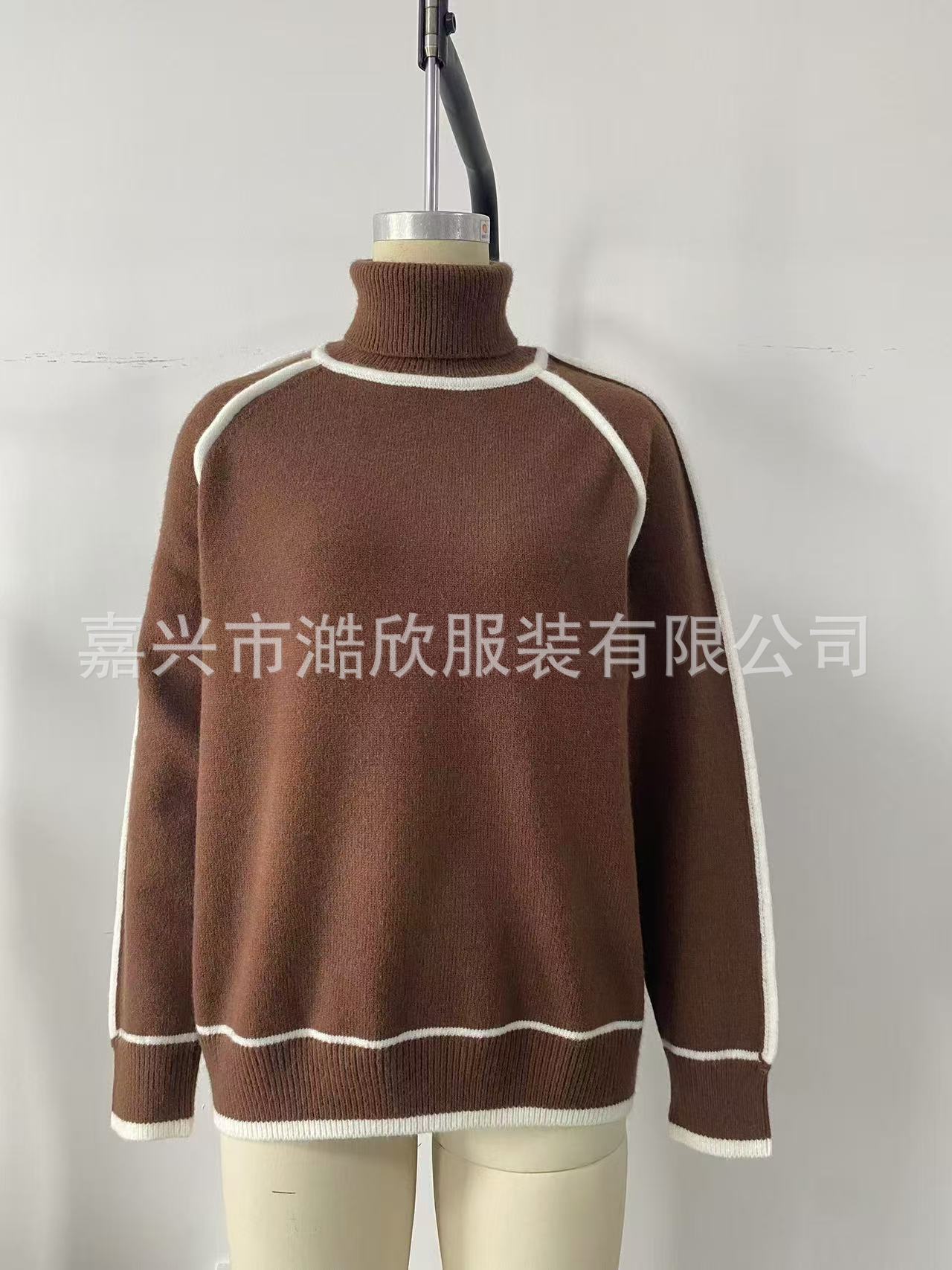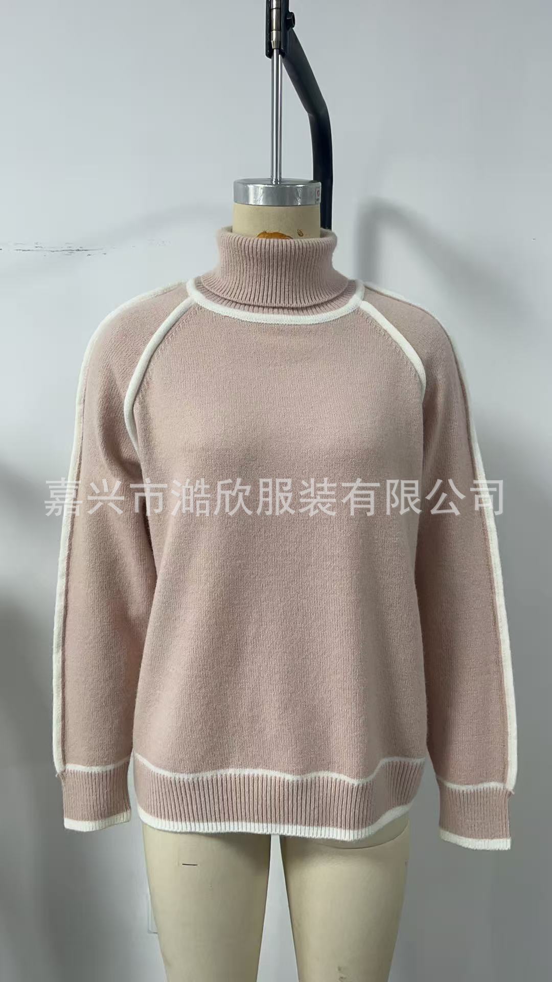 亚马逊跨境秋冬针织衫女装套头长袖高领上衣纯色宽松休闲百搭毛衣