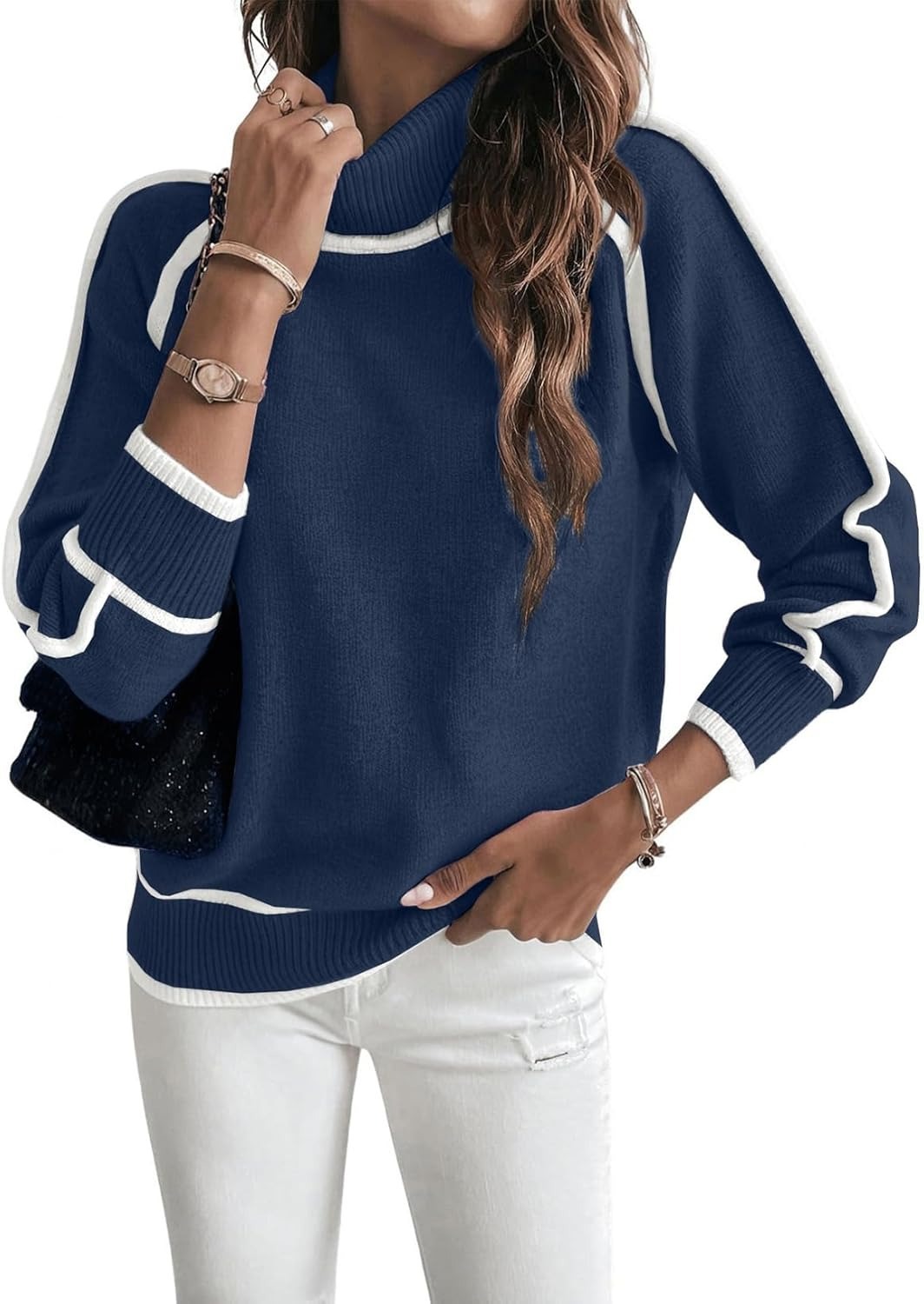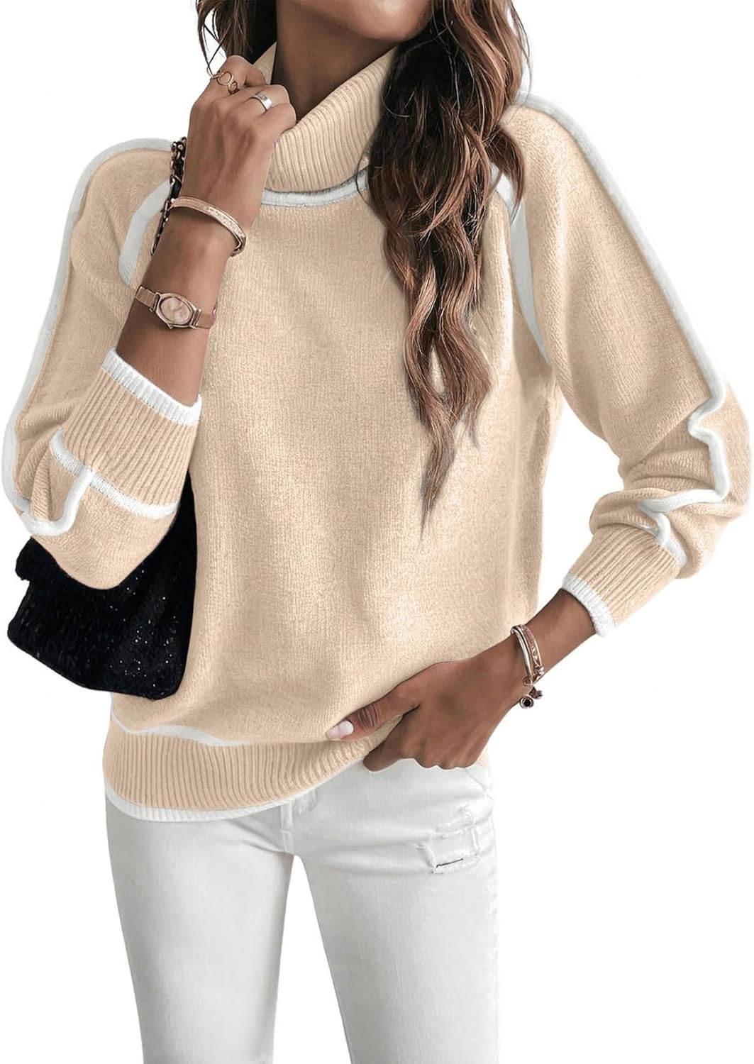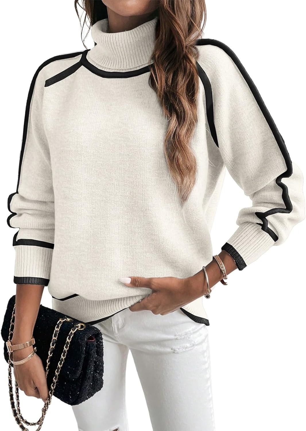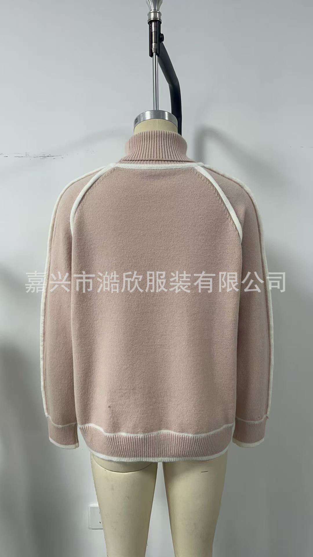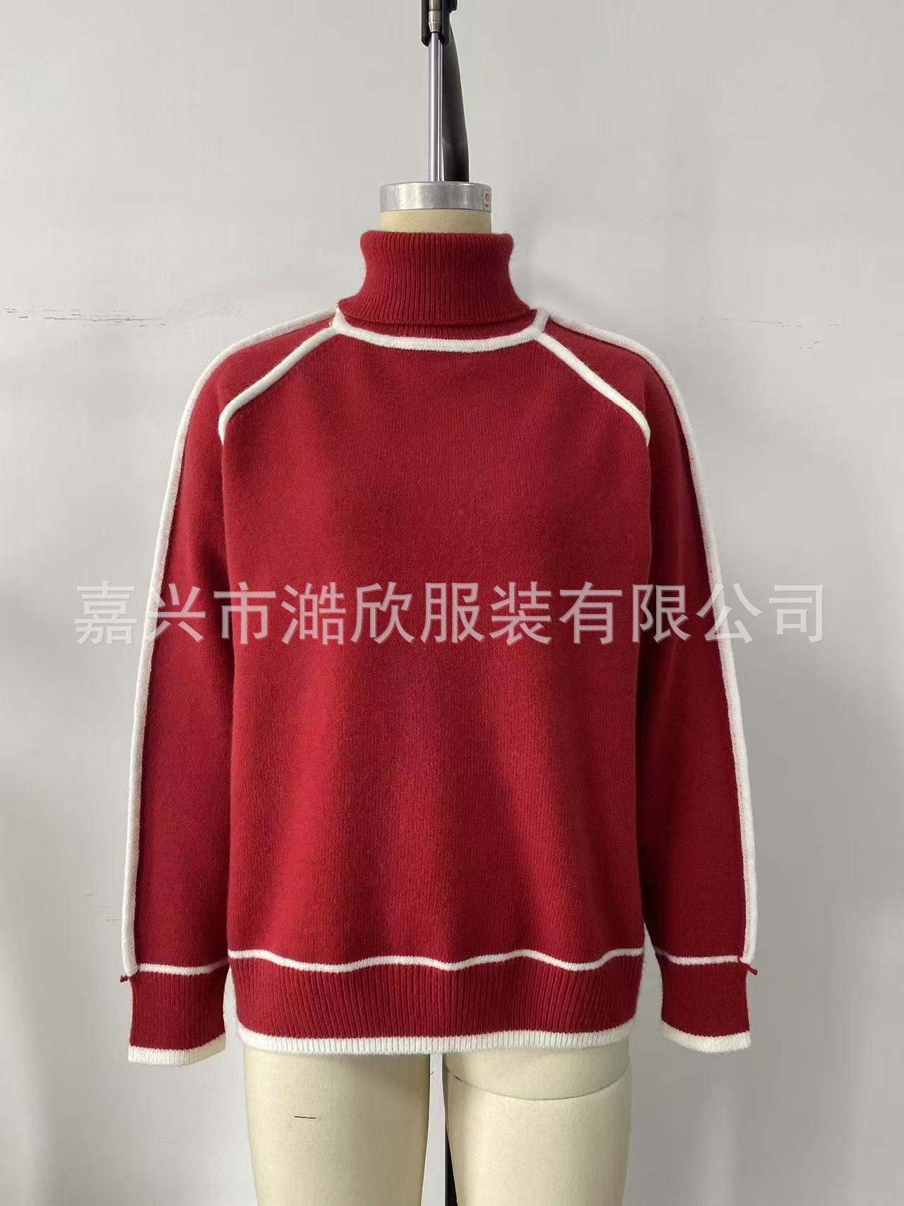 亚马逊跨境秋冬针织衫女装套头长袖高领上衣纯色宽松休闲百搭毛衣