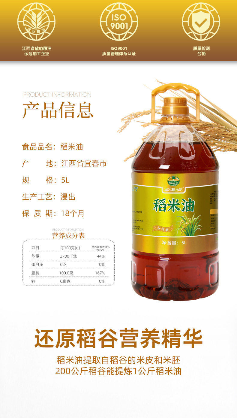 福乐家桶装稻米油5L家用食用油含谷维素纯植物油礼品团购非调和油