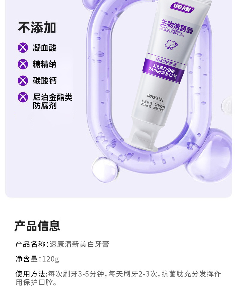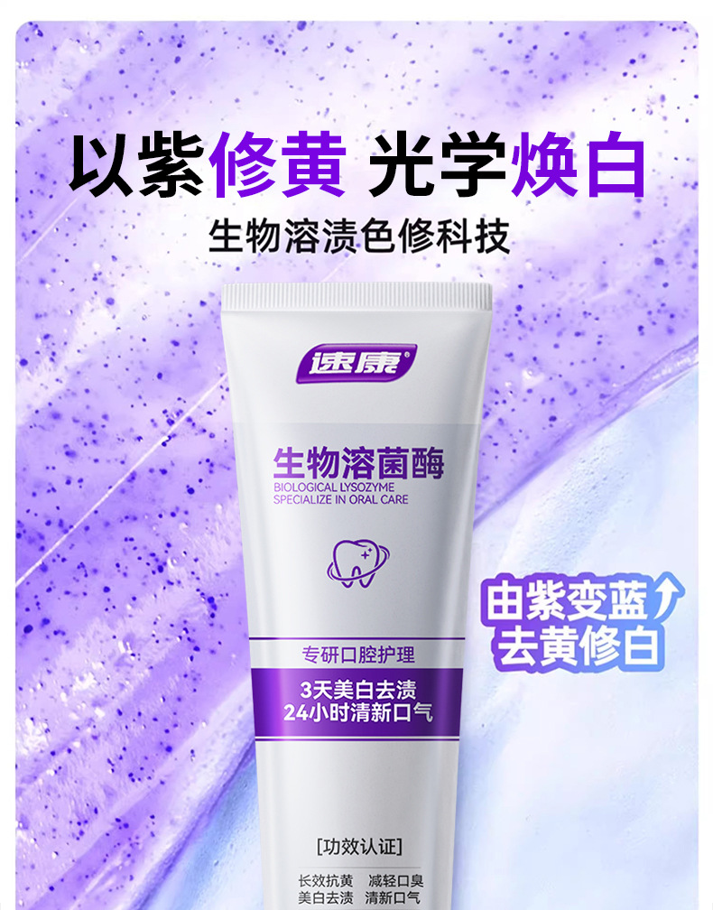 速康色修美白牙膏清新口气减轻口臭亮白祛渍牙齿黄溶菌酶正品成人