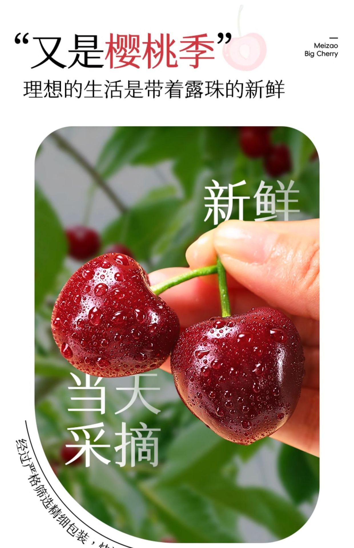美早大樱桃国产车厘子5斤新鲜水果当季大连3J整箱珍珠孕妇包邮黑