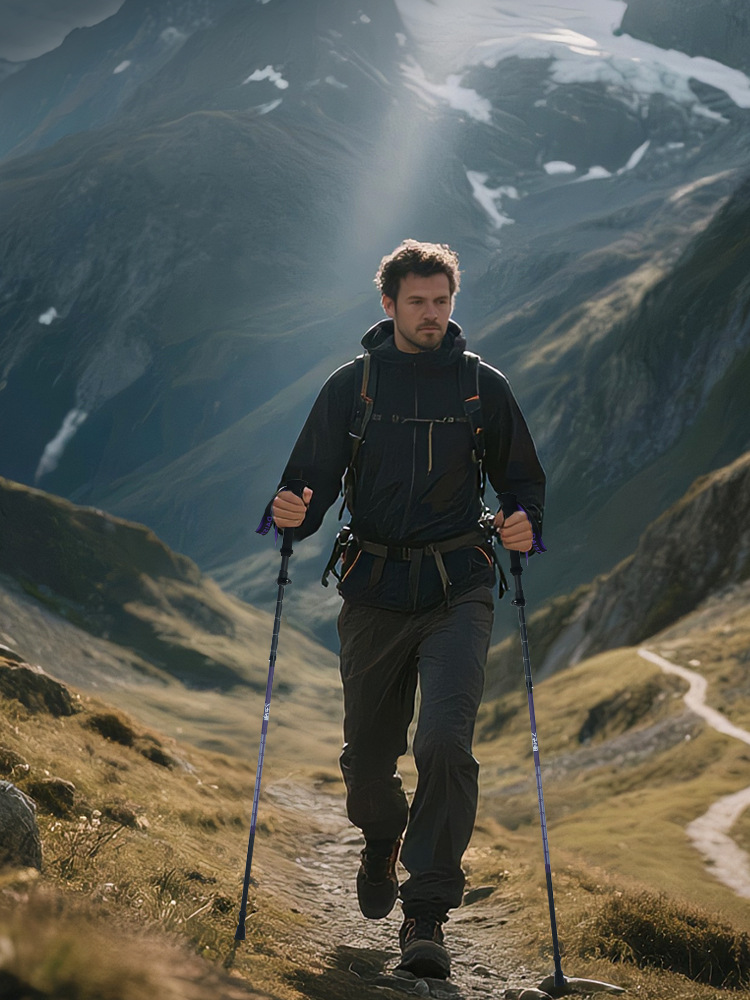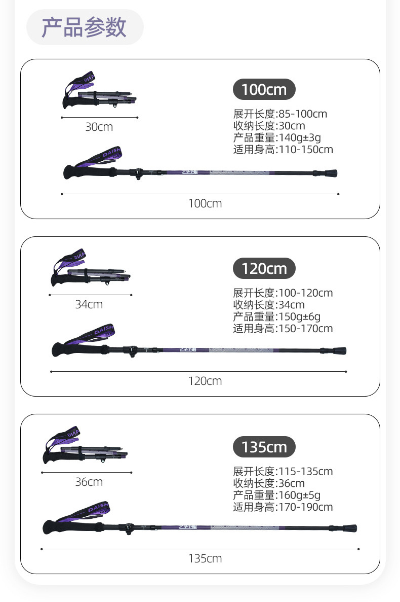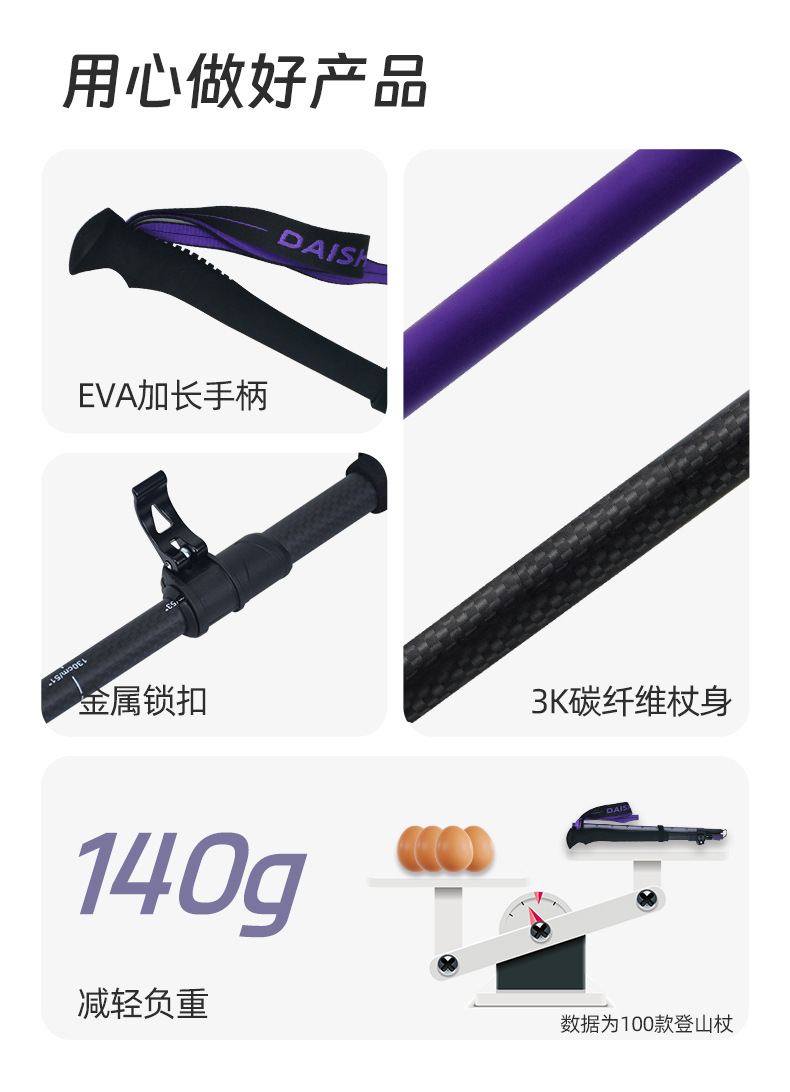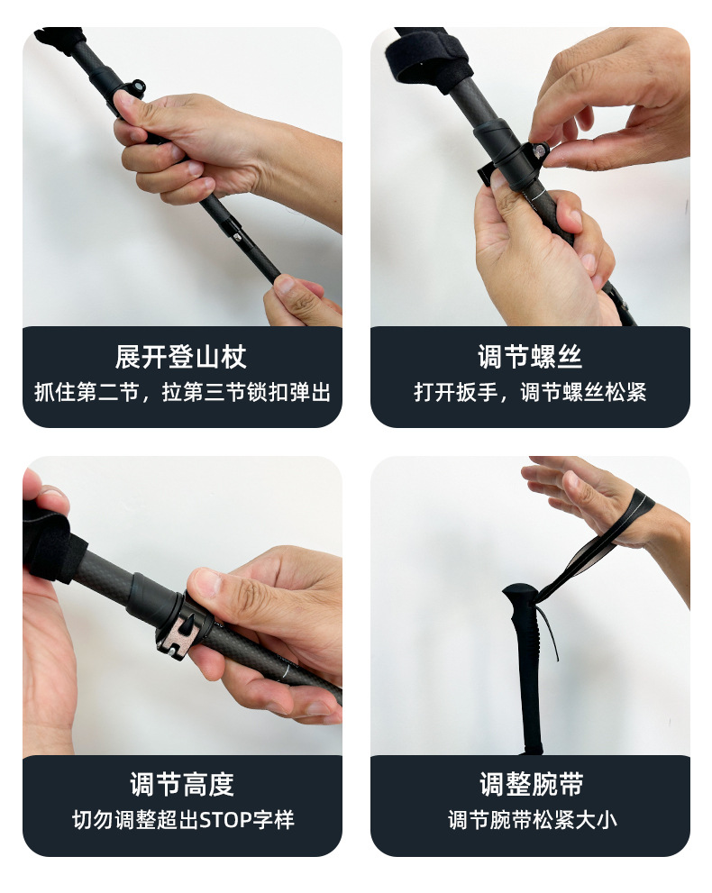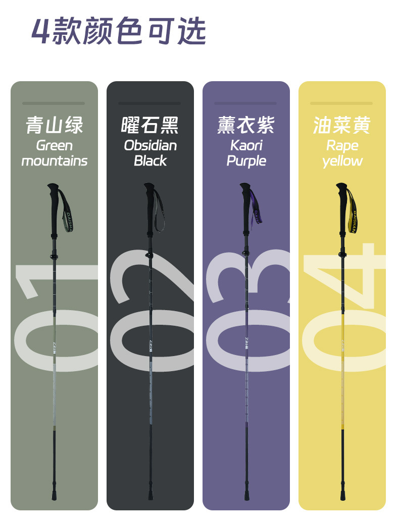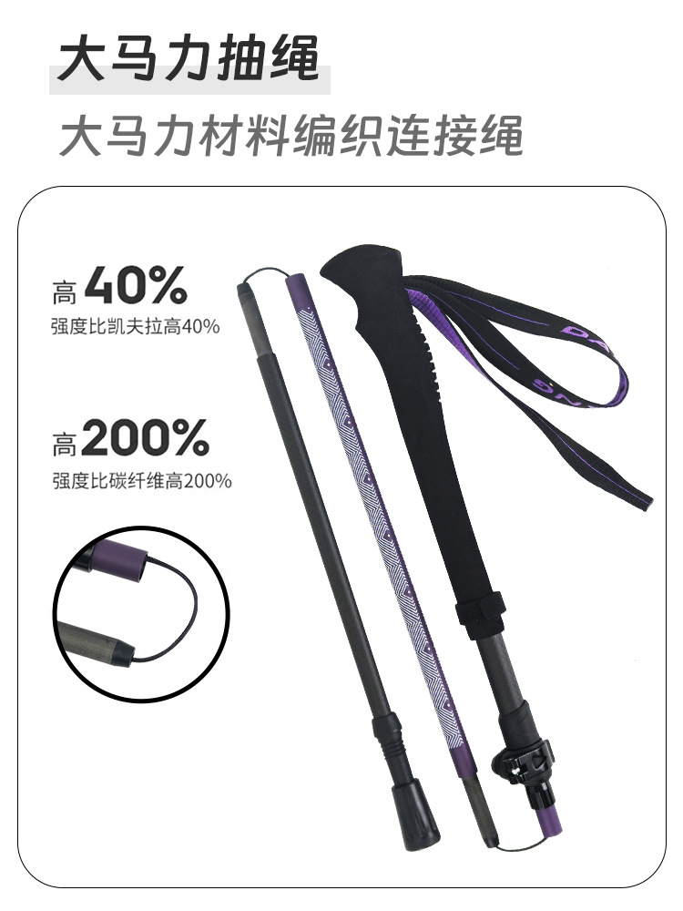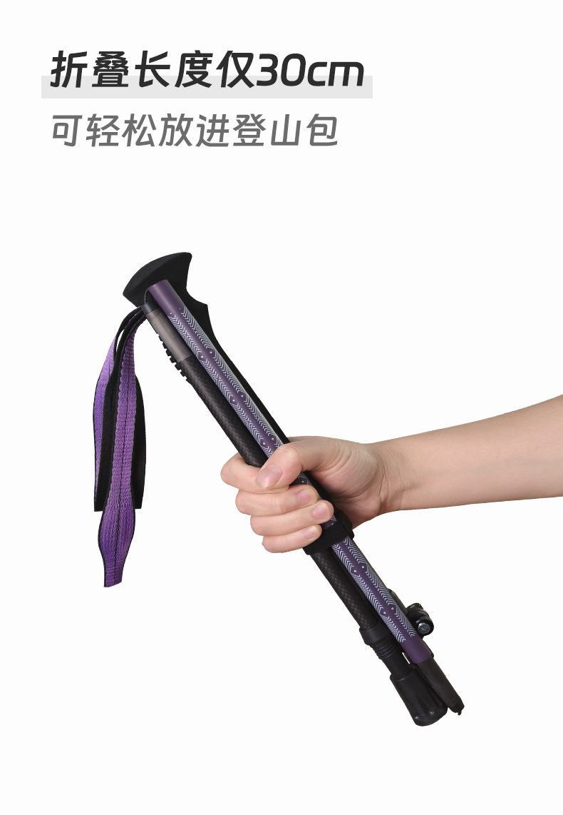 3K碳素登山杖专业户外越野跑杖可折叠伸缩外锁超轻碳纤维徒步手杖