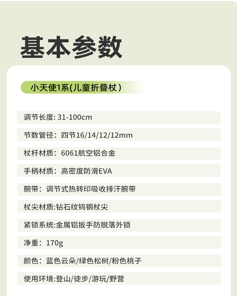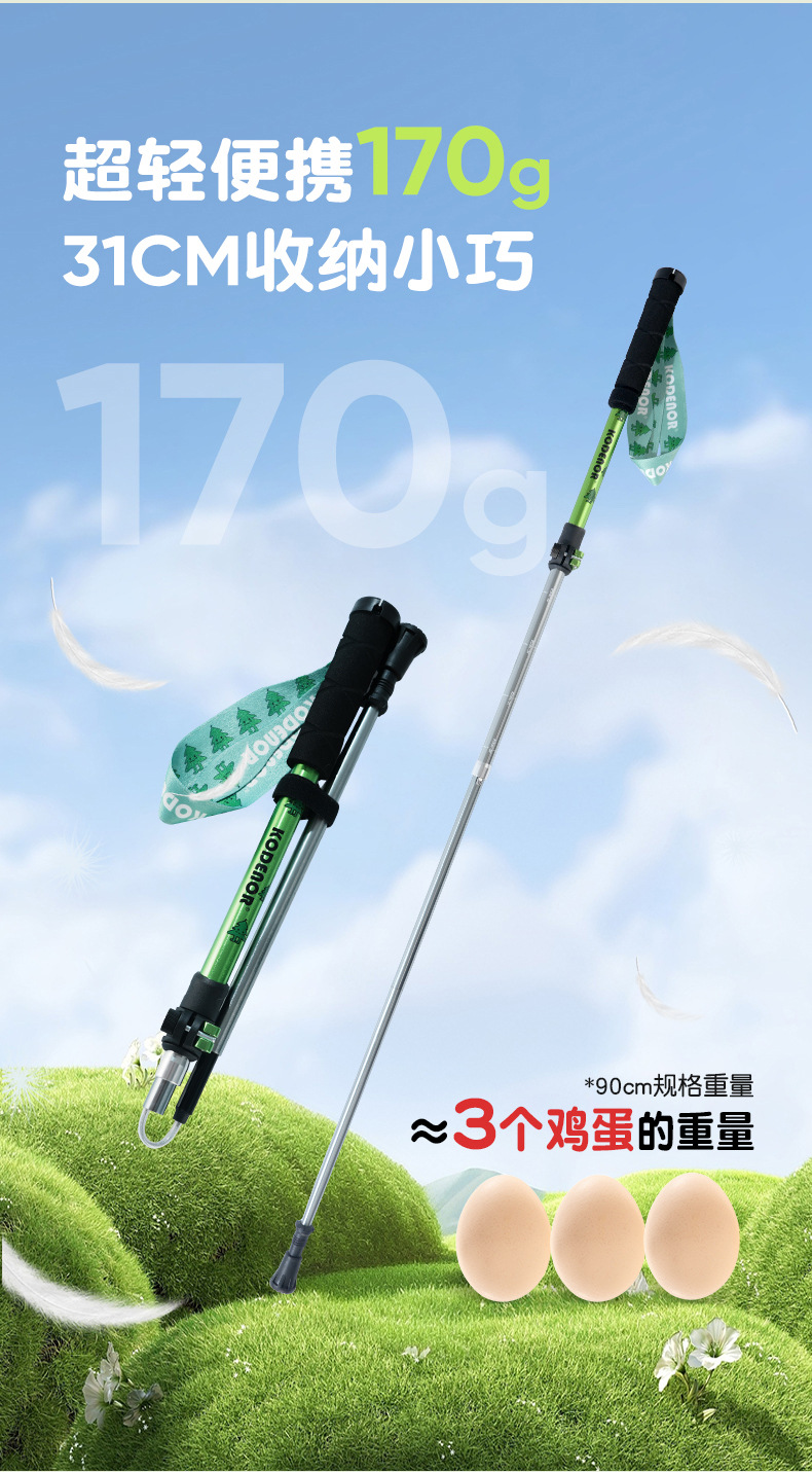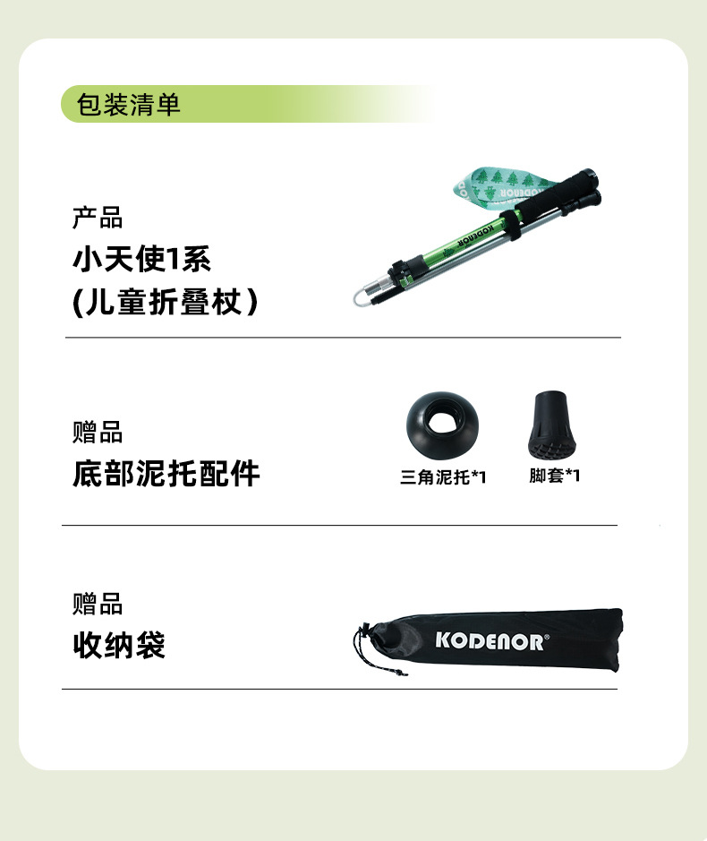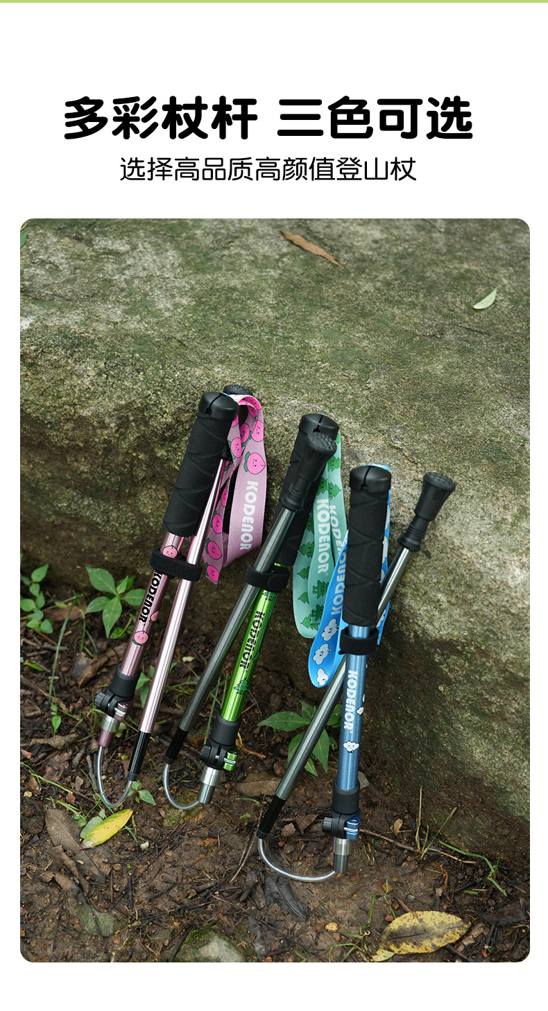 科德诺小天使1系儿童折叠登山杖超轻铝合金外锁伸缩手杖徒步装备