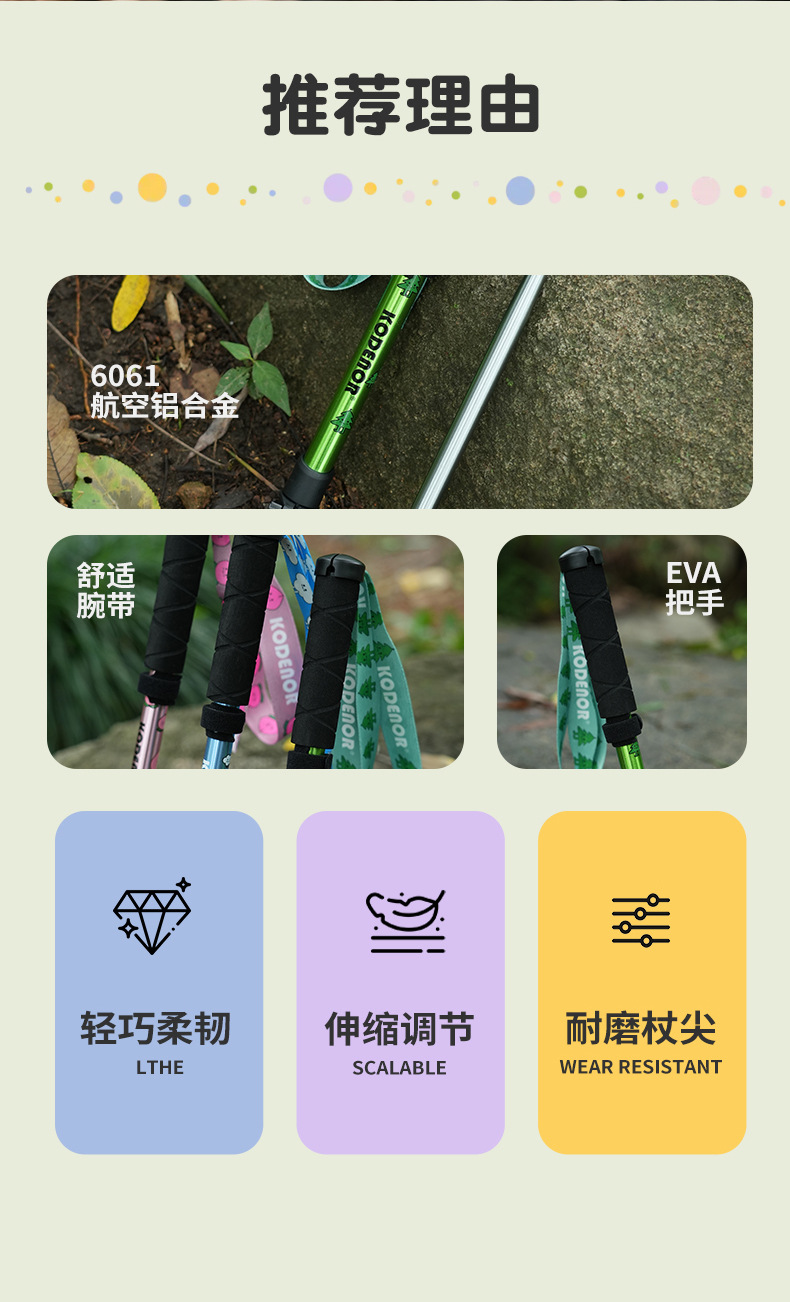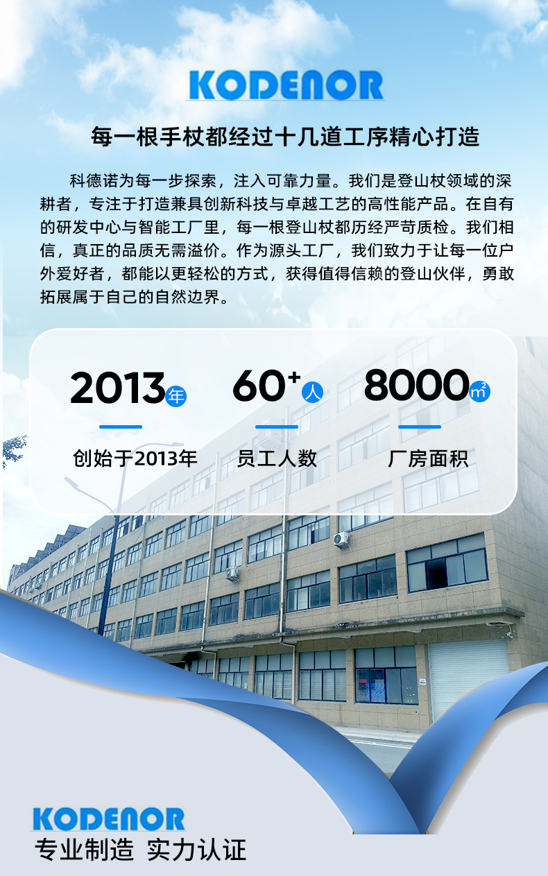 商品描述 大家好,欢迎光临宁海县科德诺户外用品,我们是一家登山杖产品研发制造的企业,可以为客户提供现货产品和加工服务。