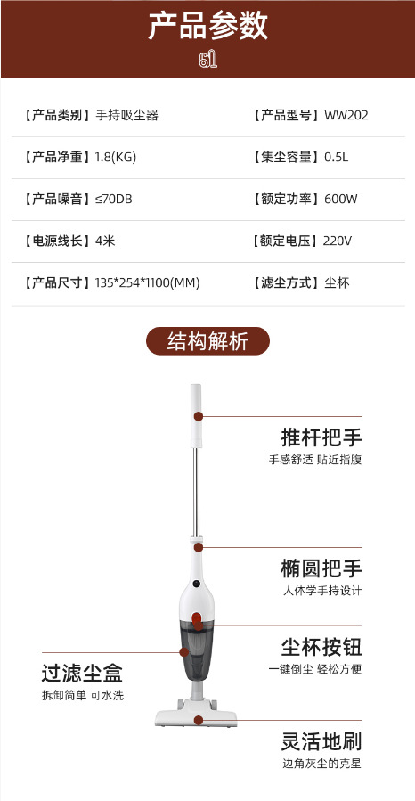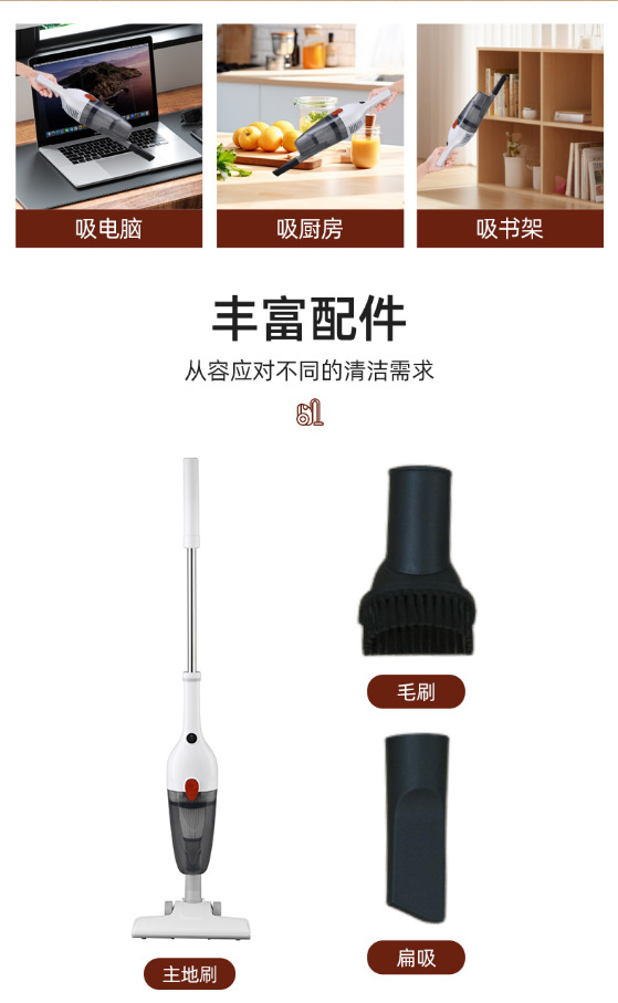 便携家用手持小推杆吸尘器 跨境批发 新款升级旋转抬高地刷吸尘器