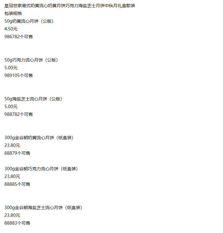 皇冠世家港式奶黄流心奶黄月饼巧克力海盐芝士月饼中秋月礼盒散装50g奶黄流心月饼(公版)