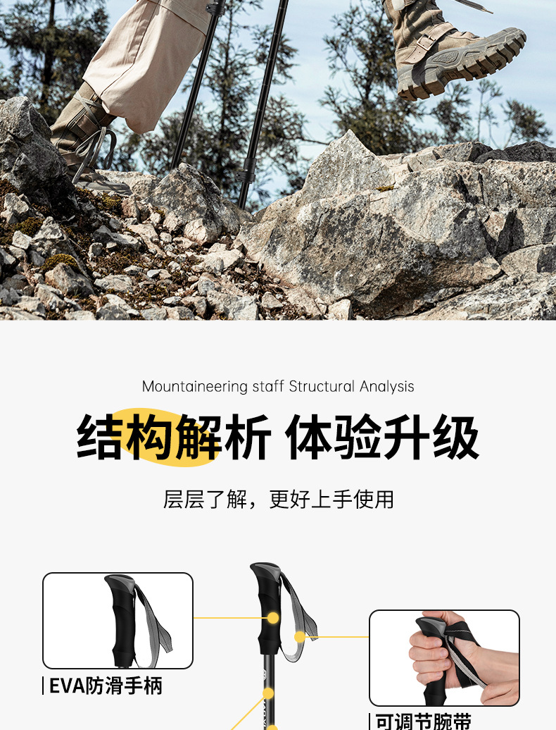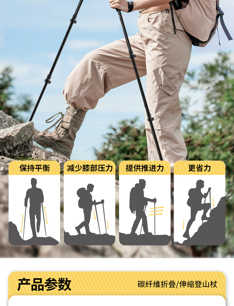 超轻碳素伸缩登山杖碳纤维专业户外锁手杖超轻爬山徒步杖拐棍批发