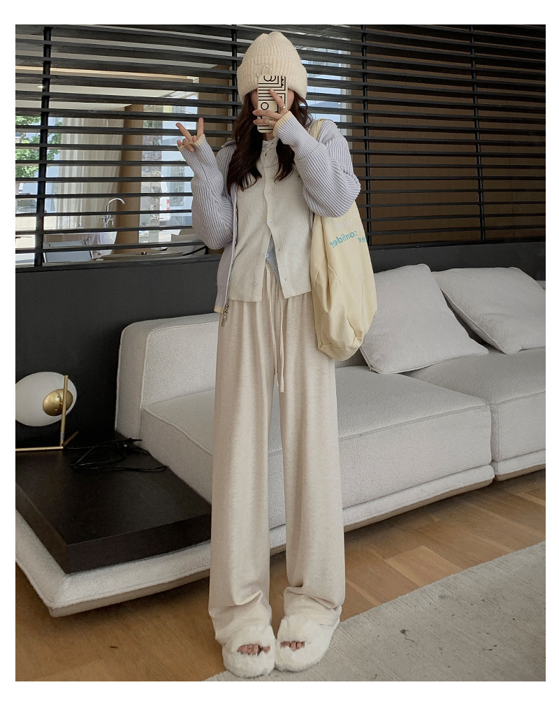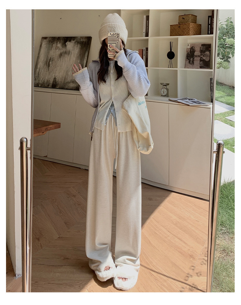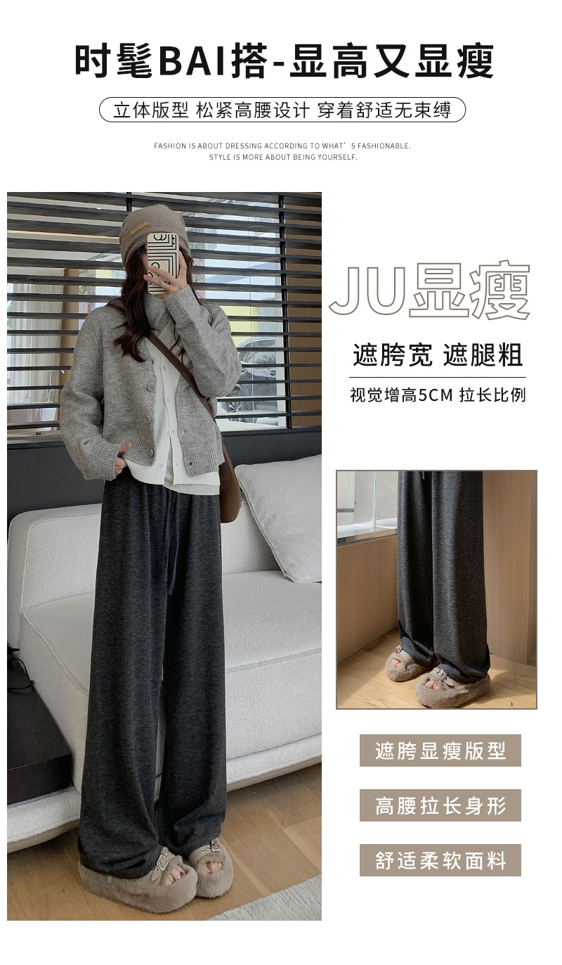 裤子女2025春秋冬季新款加绒糯米裤小个子高腰休闲垂感直筒阔腿裤