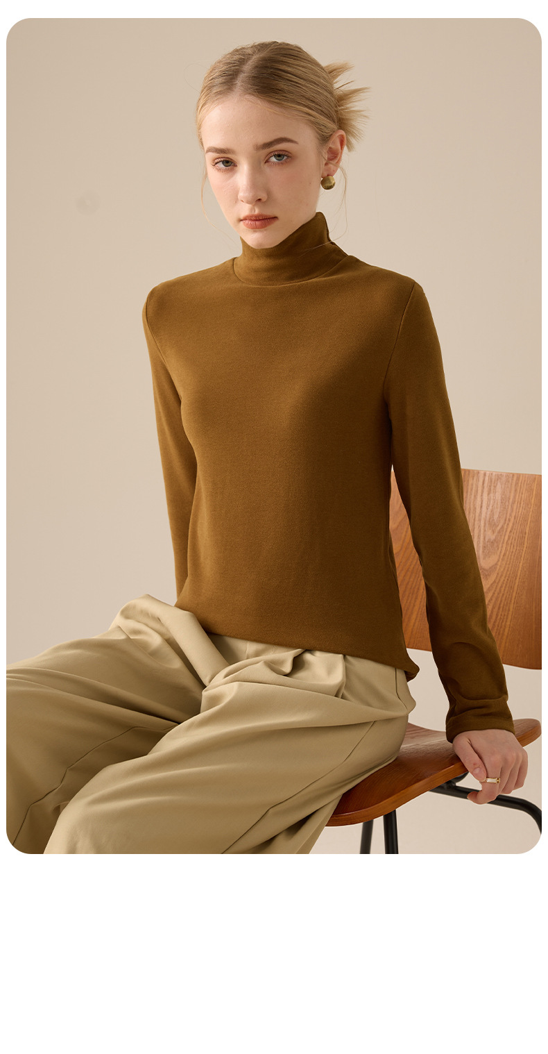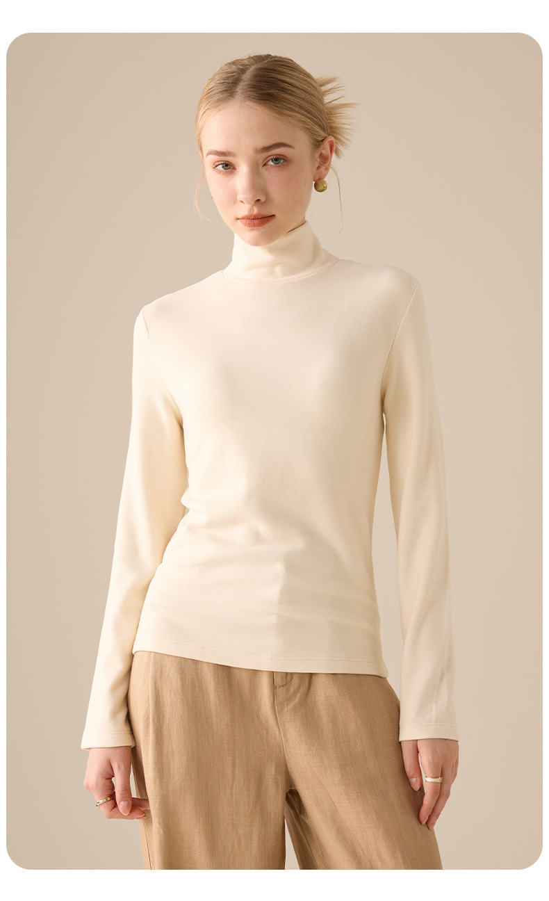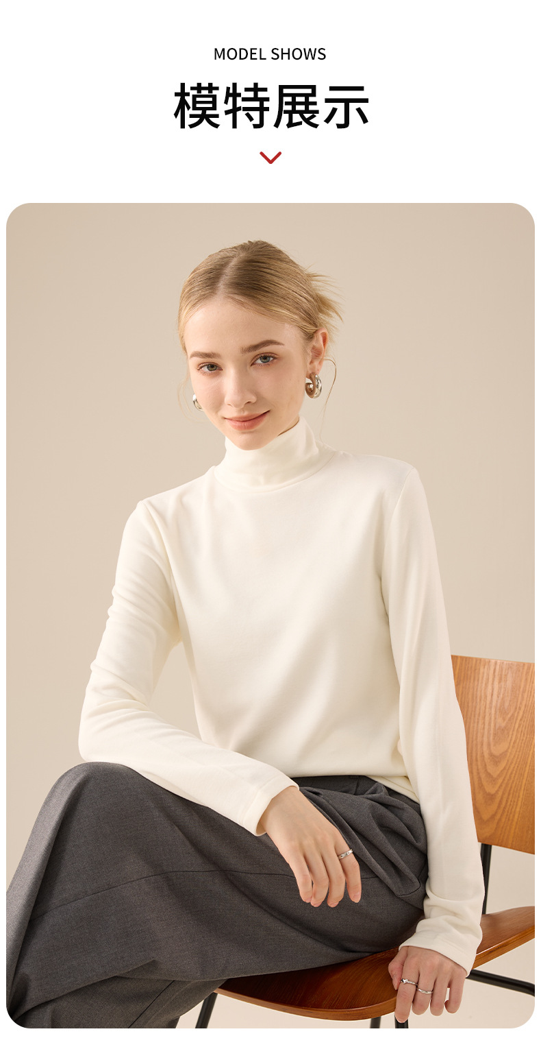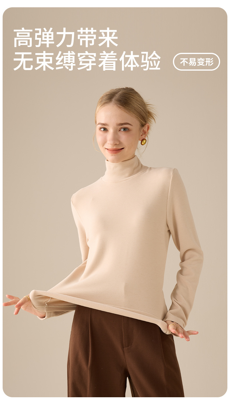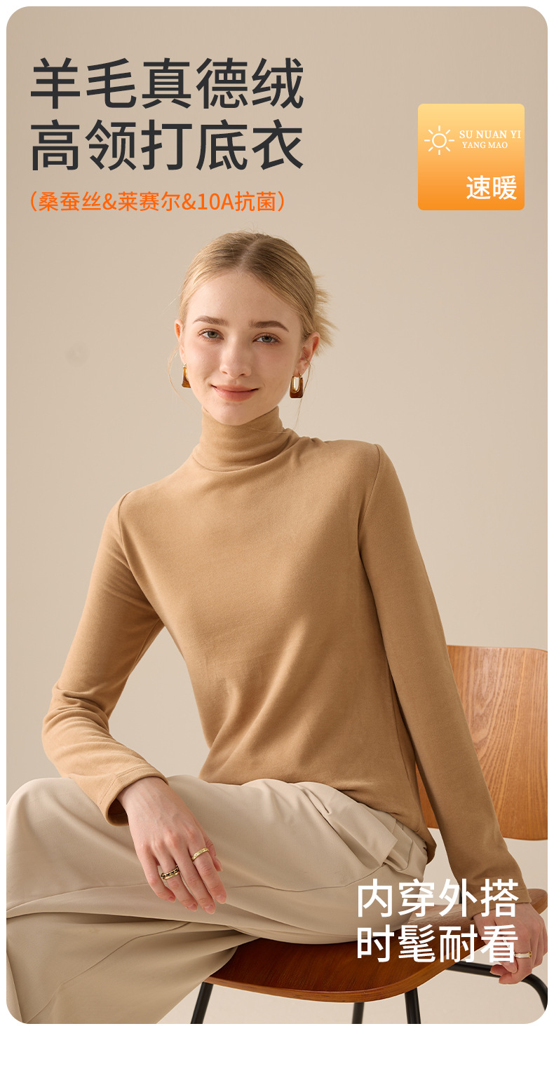 莱赛尔天丝高领打底衫女2025秋冬羊毛蚕丝加绒加厚德绒保暖上衣