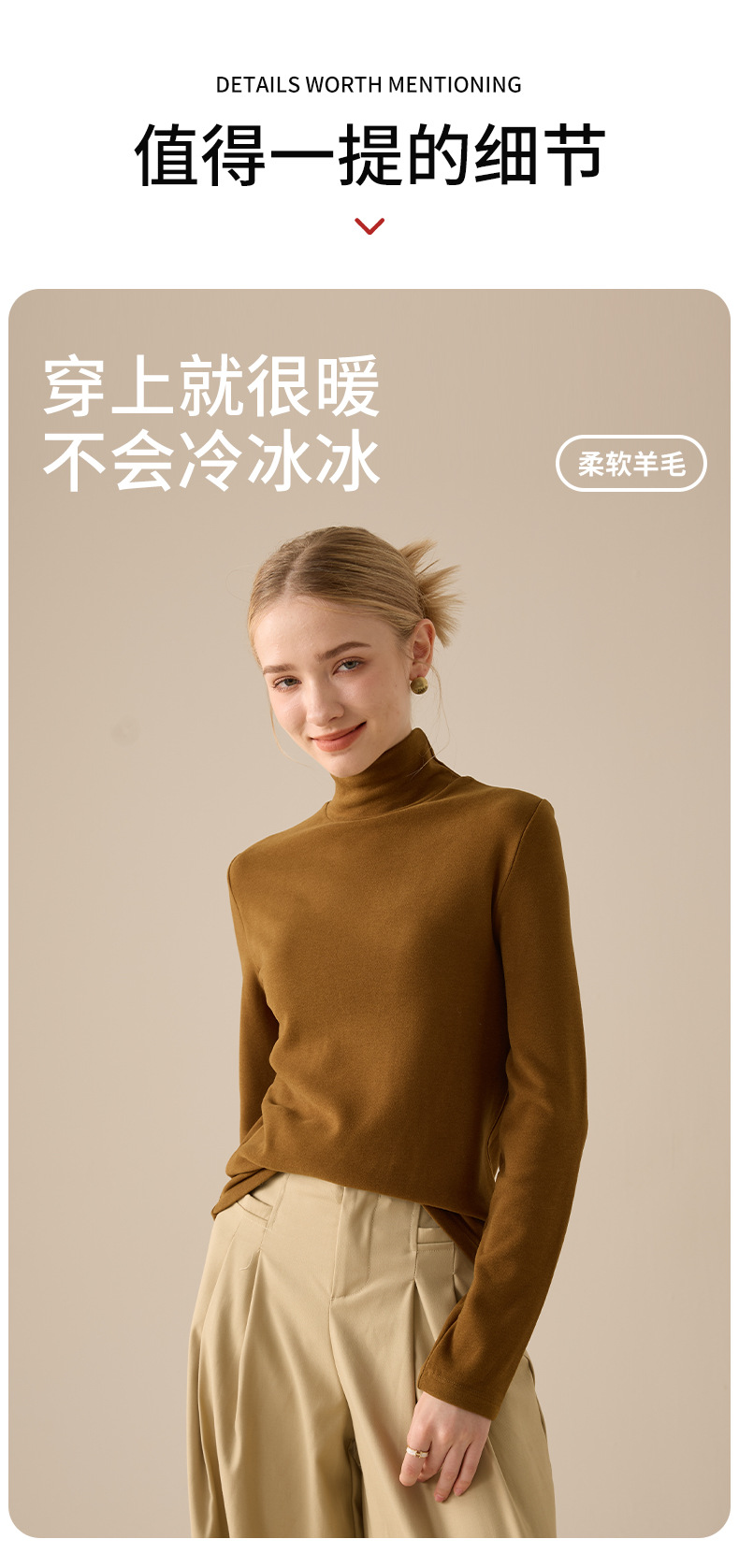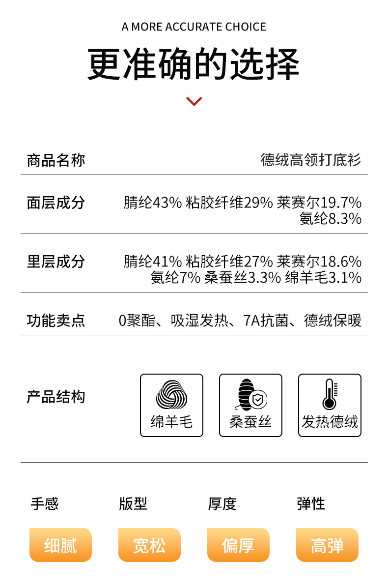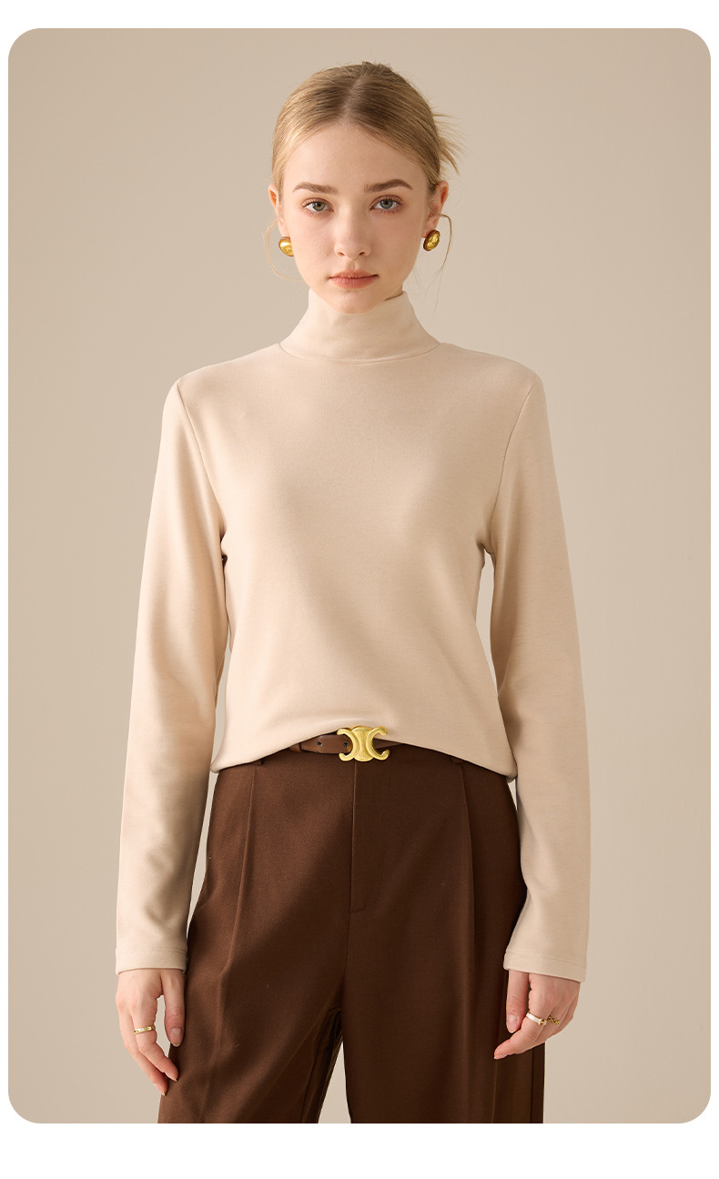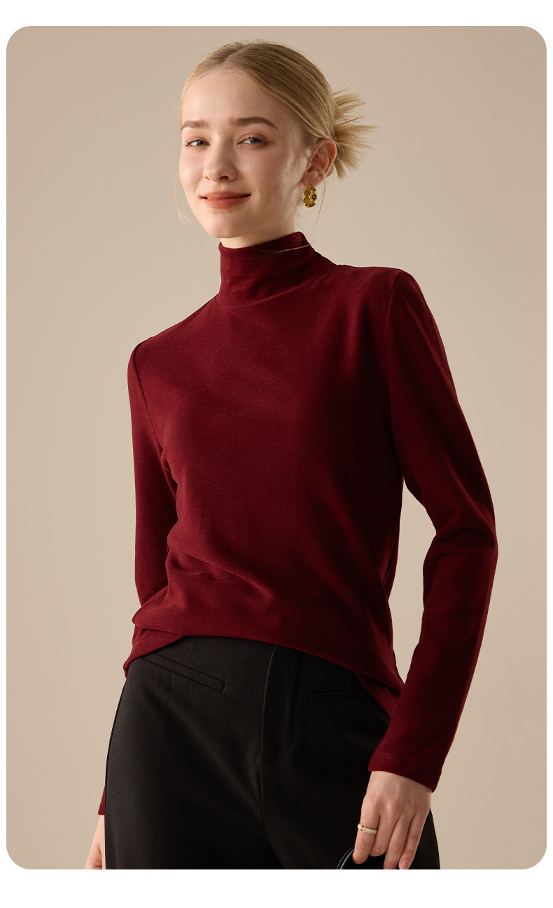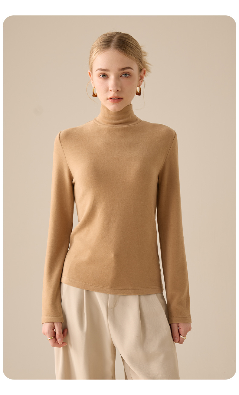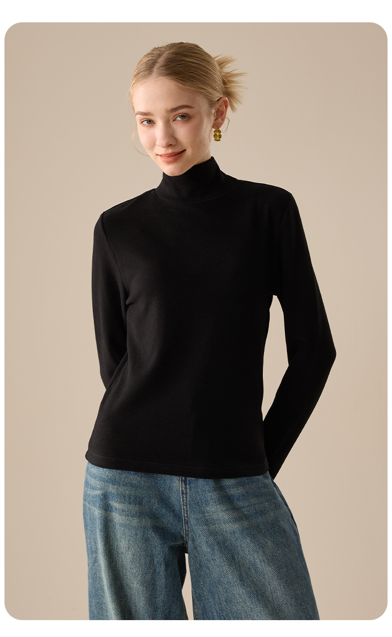 莱赛尔天丝高领打底衫女2025秋冬羊毛蚕丝加绒加厚德绒保暖上衣