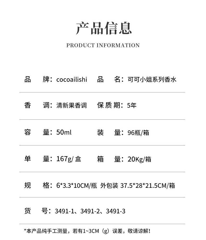 工厂直销 COCOAILISHI女士小众香水持久留香清新淡香香水一件代发