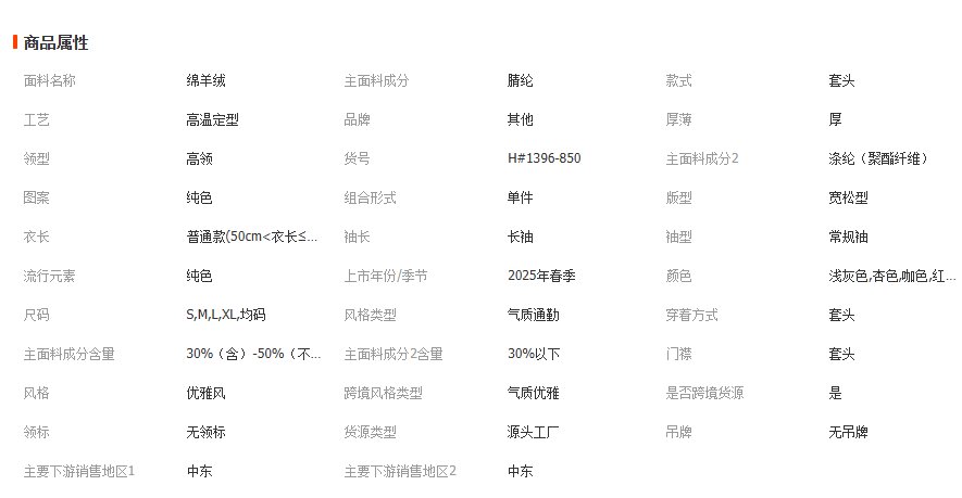 衣长60、胸围104、连肩袖长62、克重400g左右