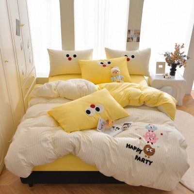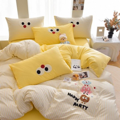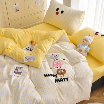 2025新款A类全棉60支水洗棉毛巾绣四件套-卡通多巴胺床品套件 1套