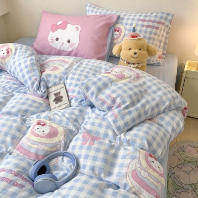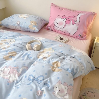 水洗棉四件套床单被套学生宿舍卡通简约风三件套床品南通家纺批发 1套