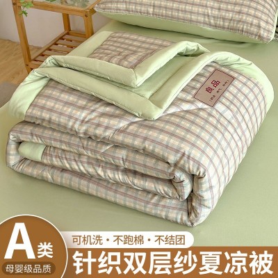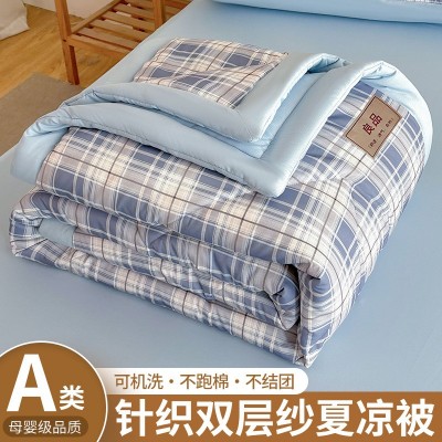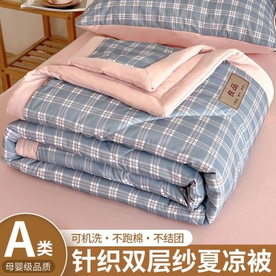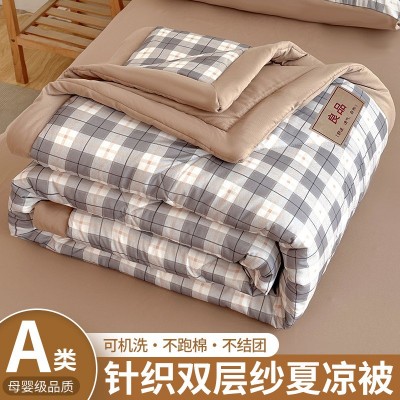 针织棉双层纱夏凉被可机洗学生宿舍空调被南通家纺床上用礼品批发 1床