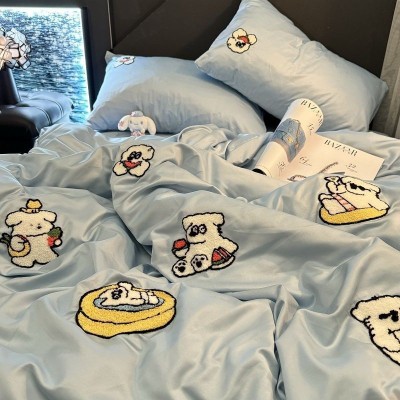 S被套床单超柔卡通水洗小狗冰丝四件套刺绣儿童宿舍床上三件套可 1件