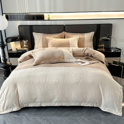 a类雕花牛奶绒四件套冬季加厚保暖高级感床单被套珊瑚绒床上用品 1套