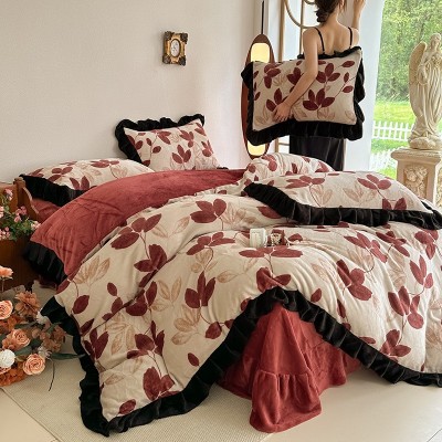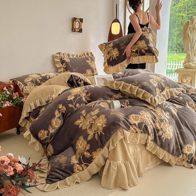 韩版床上加厚牛奶绒四件套高级感冬季保暖床单被套珊瑚绒被罩 1套
