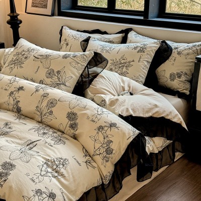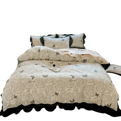 新款全棉赫本风四件套高级感花边床单被套纯棉三件套床笠款床品 1套