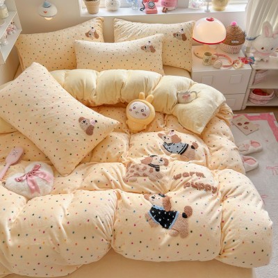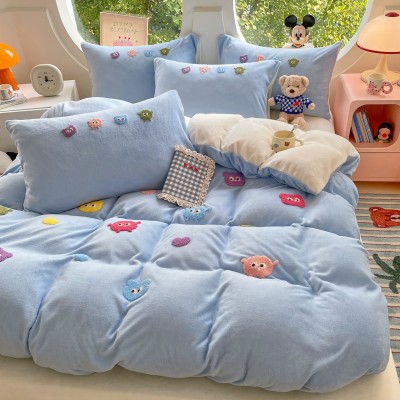 南通家纺冬天加厚牛奶床上四件套珊瑚绒被套床单a类三件套加绒 1套