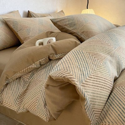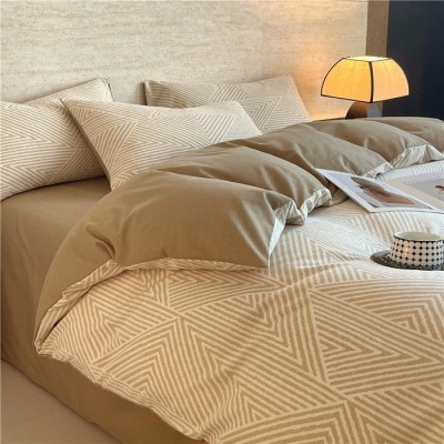 无印风加厚以原棉磨毛棉床上四件套被套秋冬床单床笠款宿舍三件套 1套