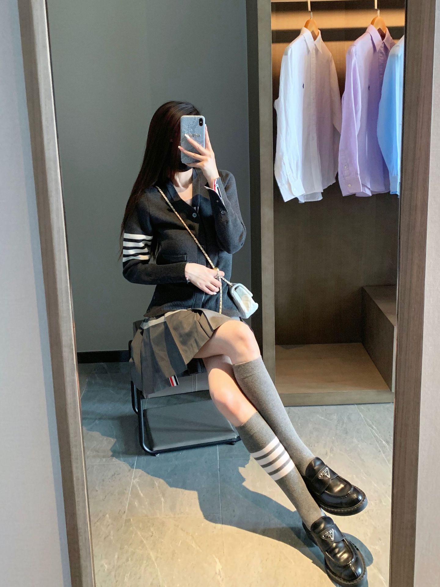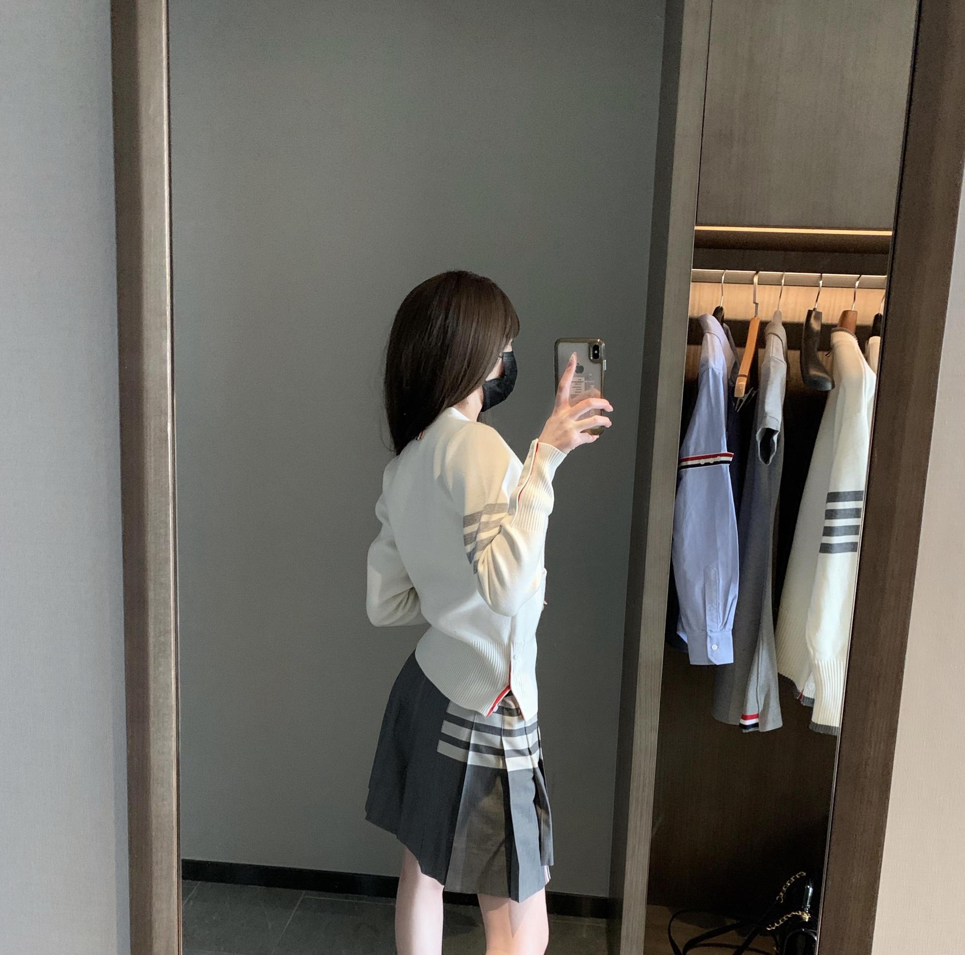 TB女士春秋季新款V领针织开衫修身百搭休闲王*凌同款四扣开衫