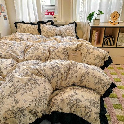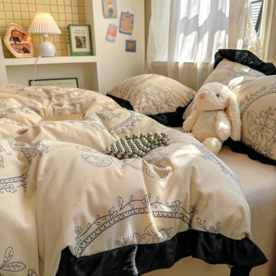 2025新款轻法式赫本风灯芯绒牛奶绒四件套立体韩版花边复古牛奶绒 1套