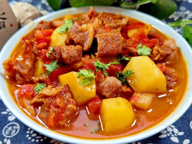 - 西红柿土豆炖牛腩:酸甜咸鲜,汤汁浓稠,土豆和牛肉炖得烂乎乎的,孩子老人都爱,绝对是“米饭杀手”!